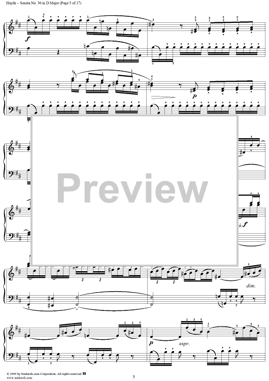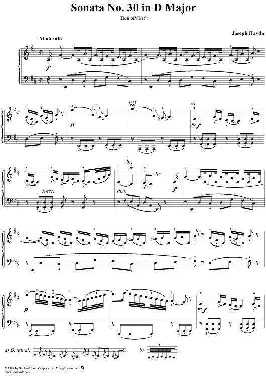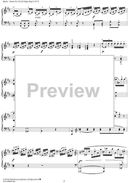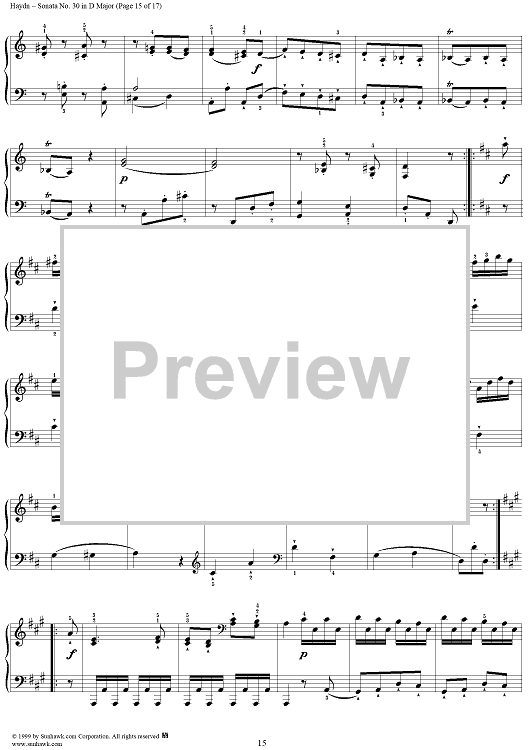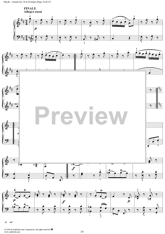 Digital Sheet Music for Piano Sonata no. 30 in D Major by Franz Joseph Haydn scored for Piano Solo; id:118234