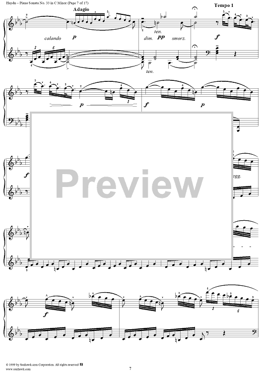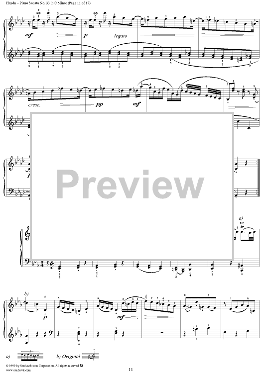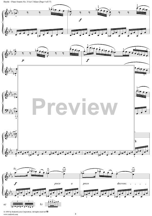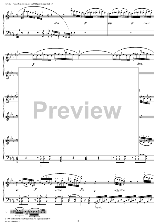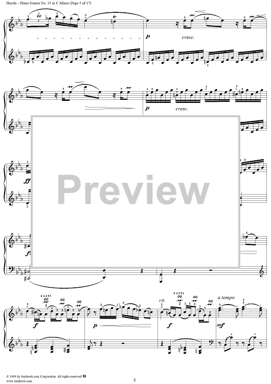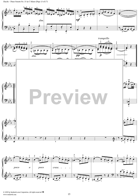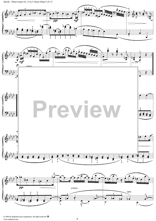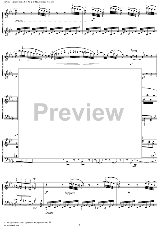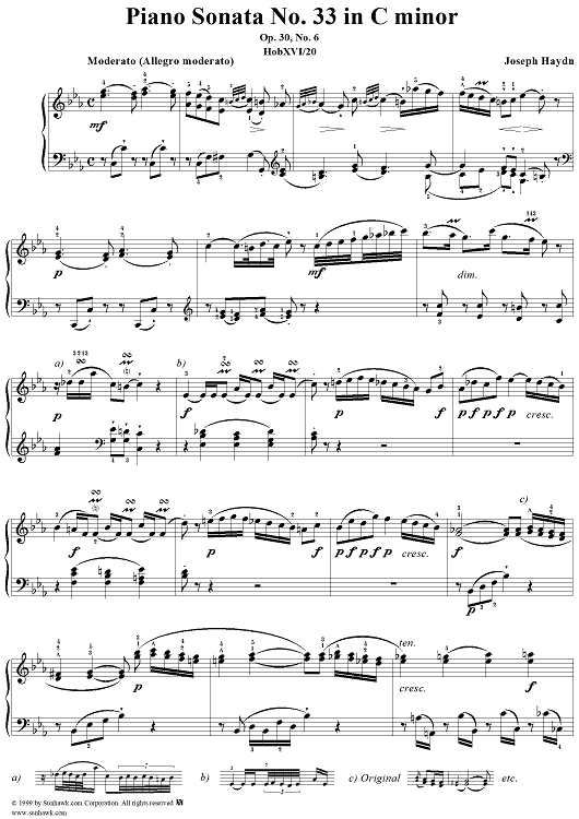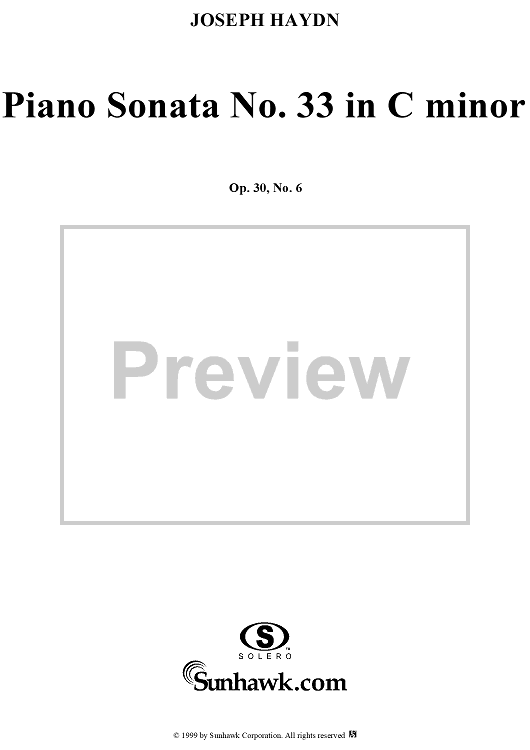 Digital Sheet Music for Piano Sonata no. 33 in C Minor by Franz Joseph Haydn scored for Piano Solo; id:118239