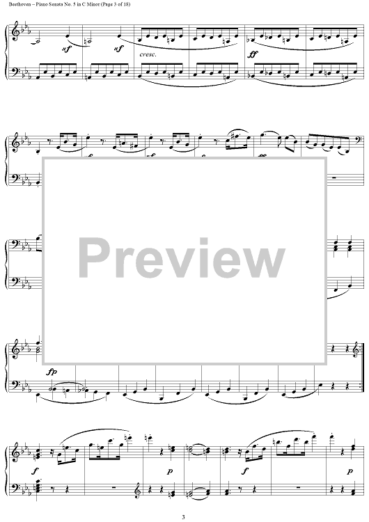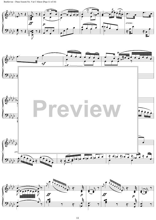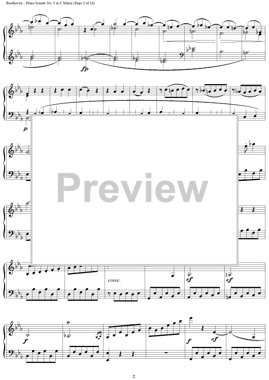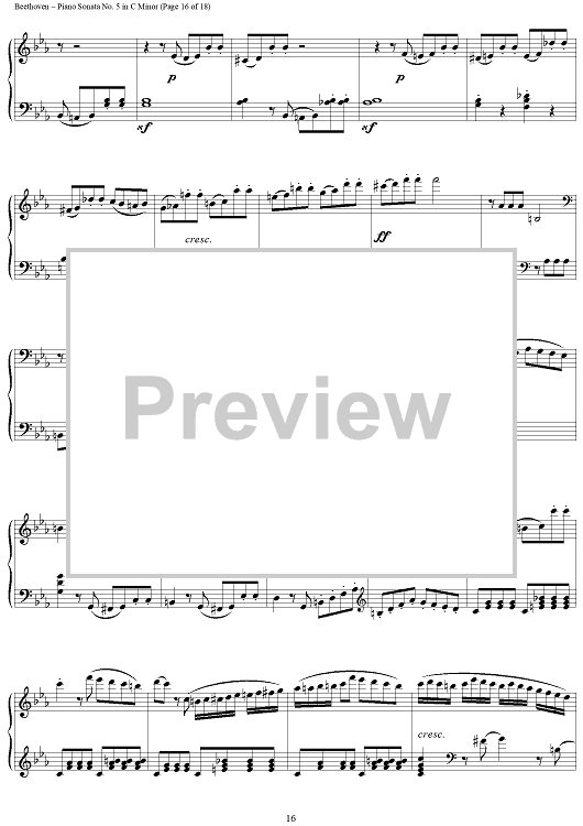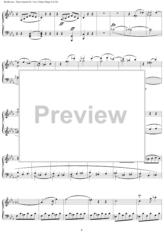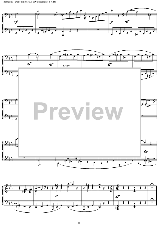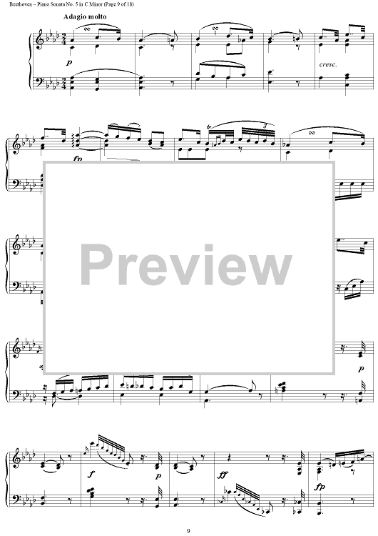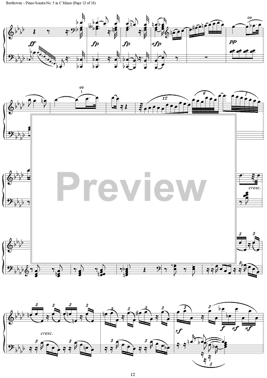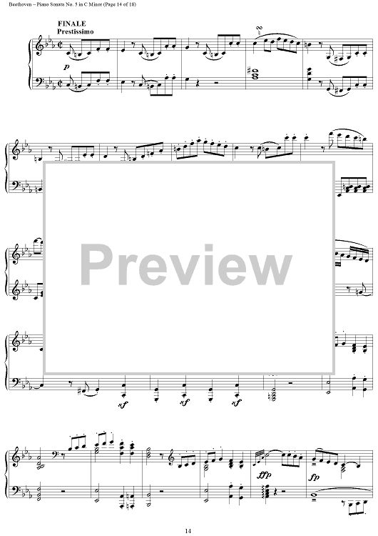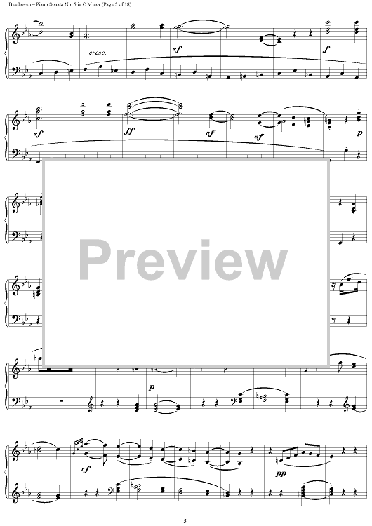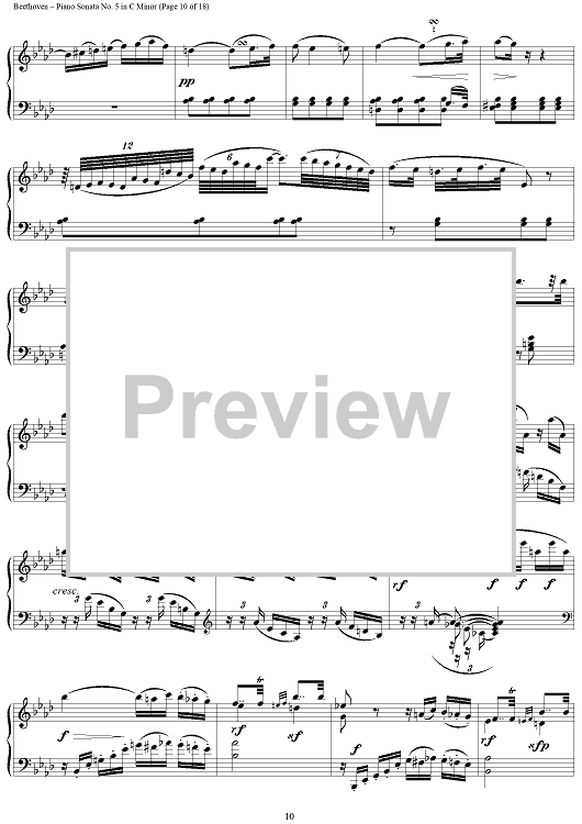 Digital Sheet Music for Piano Sonata No. 5 in C Minor, Op. 10, No. 1 by Ludwig van Beethoven scored for Piano Solo; id:117982