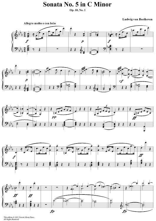 "Piano Sonata No. 5 in C Minor, Op. 10, No. 1" Sheet Music by Ludwig van Beethoven