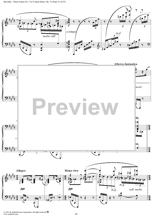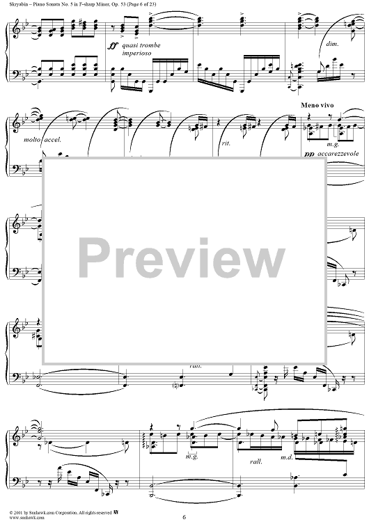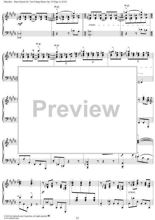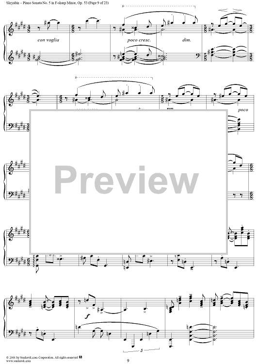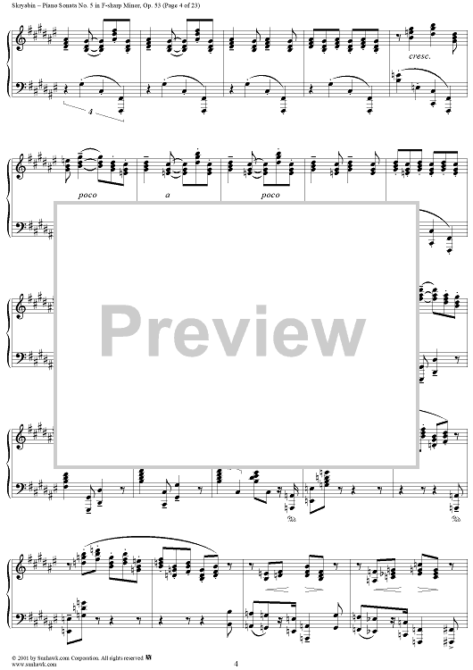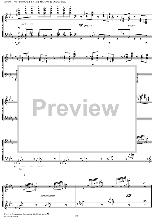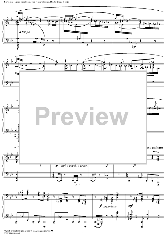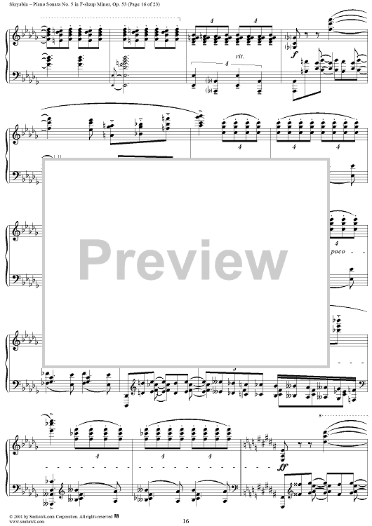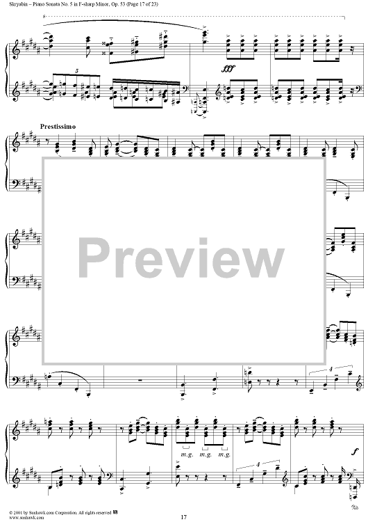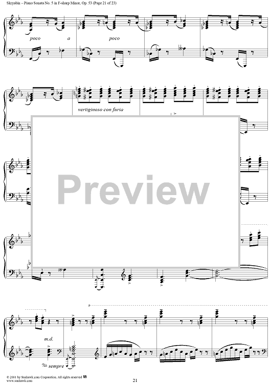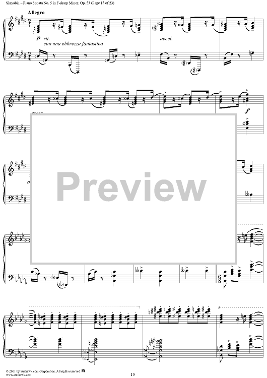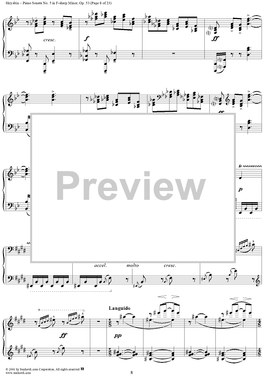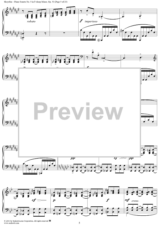 Digital Sheet Music for Piano Sonata No. 5 in F-sharp Minor "The Poem of Ecstasy", Op. 53 by Alexander Scriabin scored for Piano Solo; id:256031