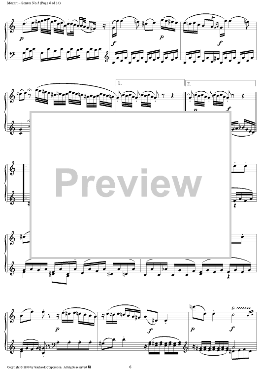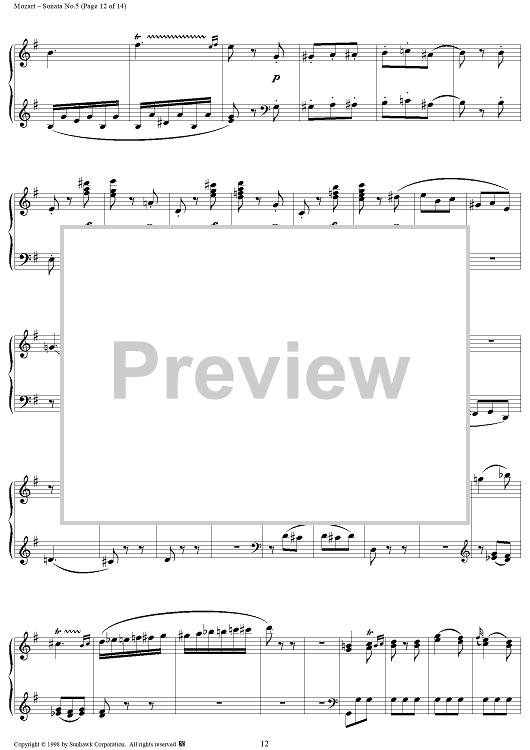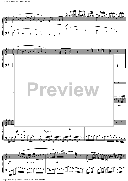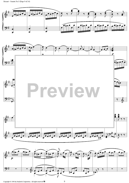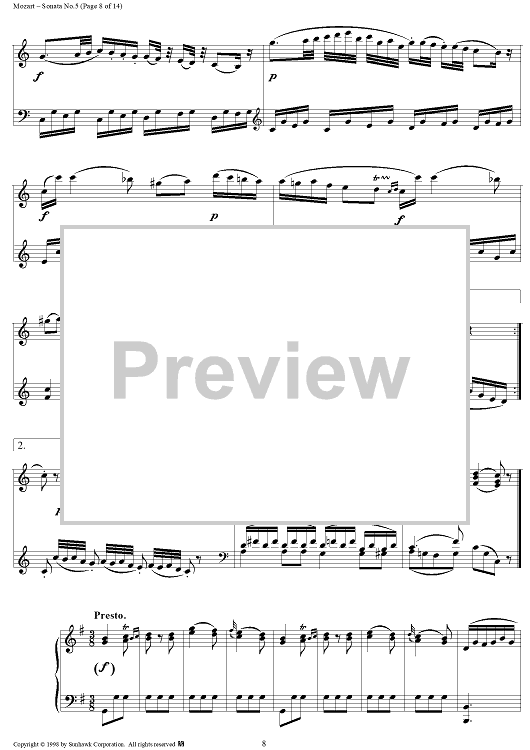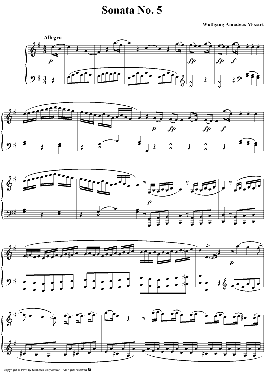 Digital Sheet Music for Piano Sonata no. 5 in G major, K283 (K189h) by Wolfgang Amadeus Mozart scored for Piano Solo; id:95553