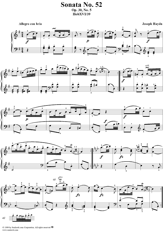 Digital Sheet Music for Piano Sonata no. 52 in G major, op. 30, no. 5 by Franz Joseph Haydn scored for Piano Solo; id:118206