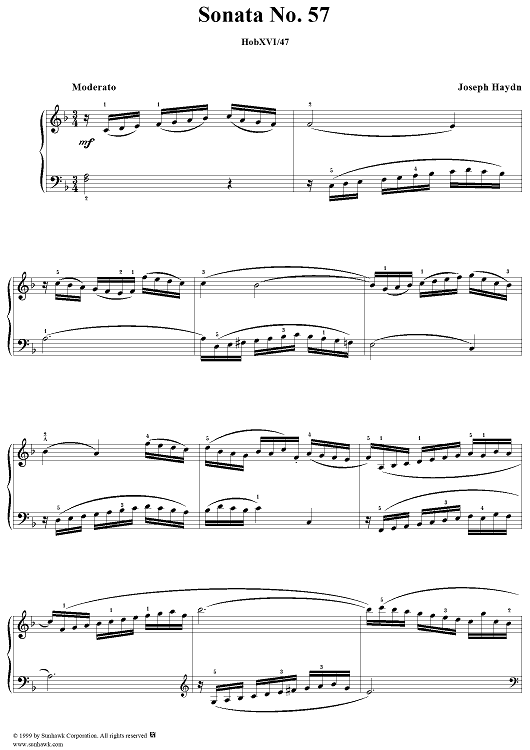 Digital Sheet Music for Piano Sonata no. 57 in F Major by Franz Joseph Haydn scored for Piano Solo; id:118153