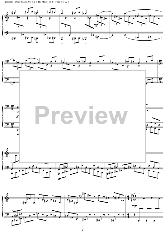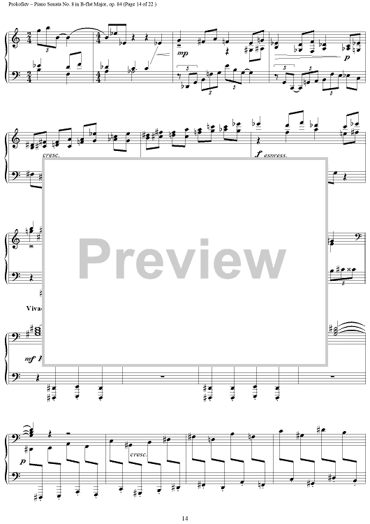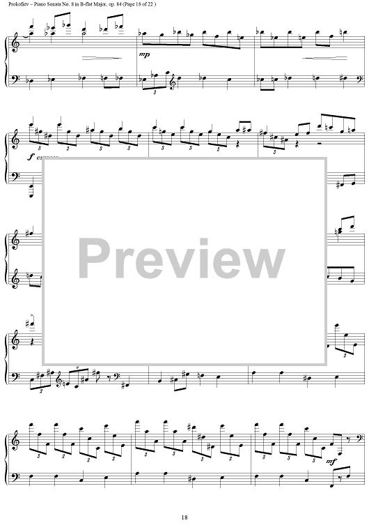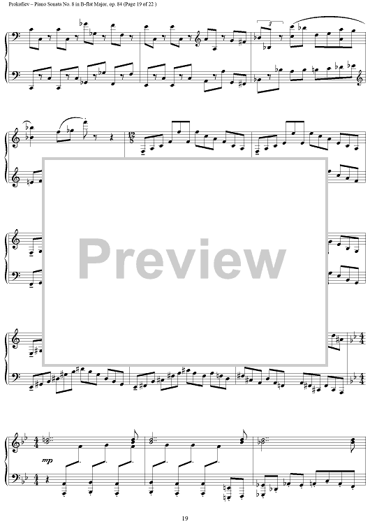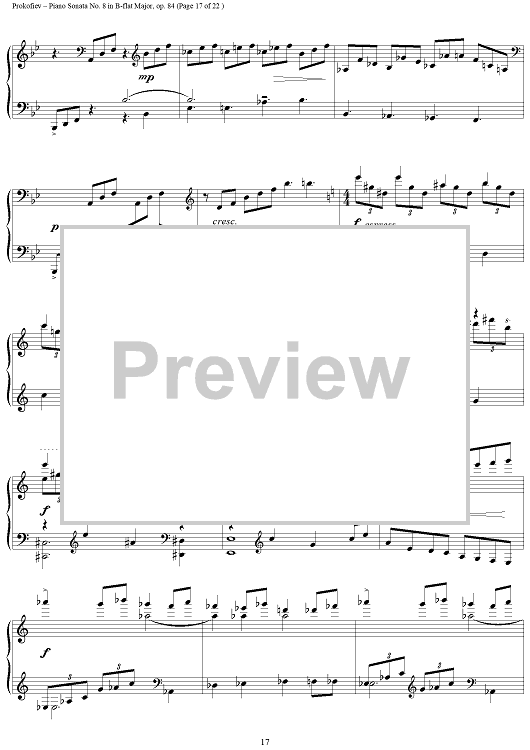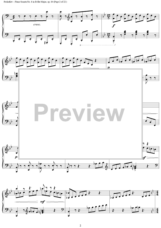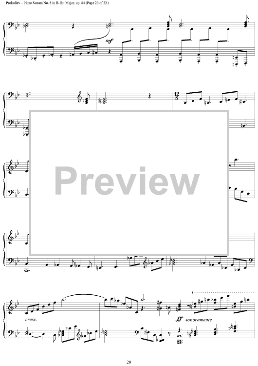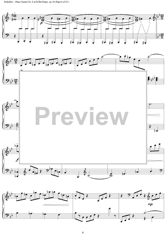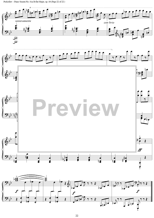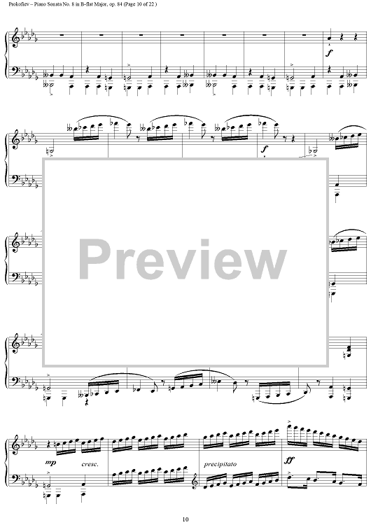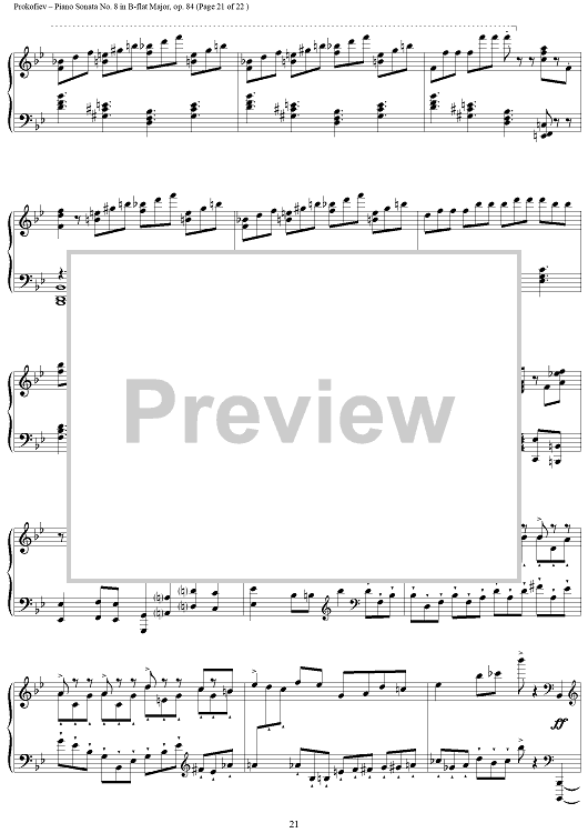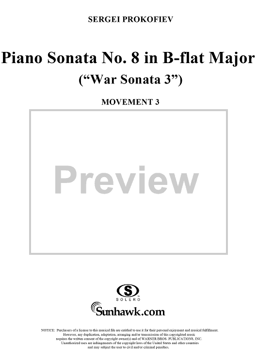 Digital Sheet Music for Piano Sonata No. 8 in B-flat Major, Op. 84, Movement 3, "War Sonata 3" by Sergei Prokofiev scored for Piano Solo; id:254796