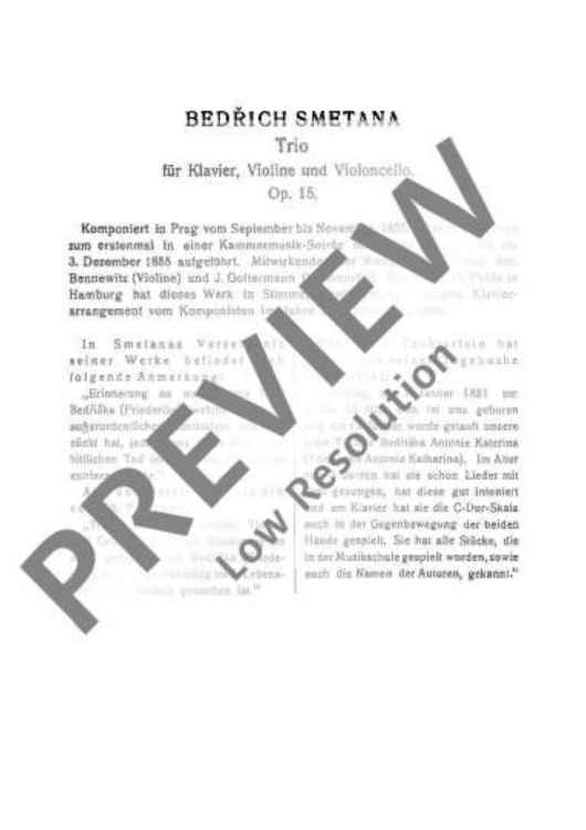 "Piano Trio G minor - Full Score" Sheet Music by Friedrich Smetana