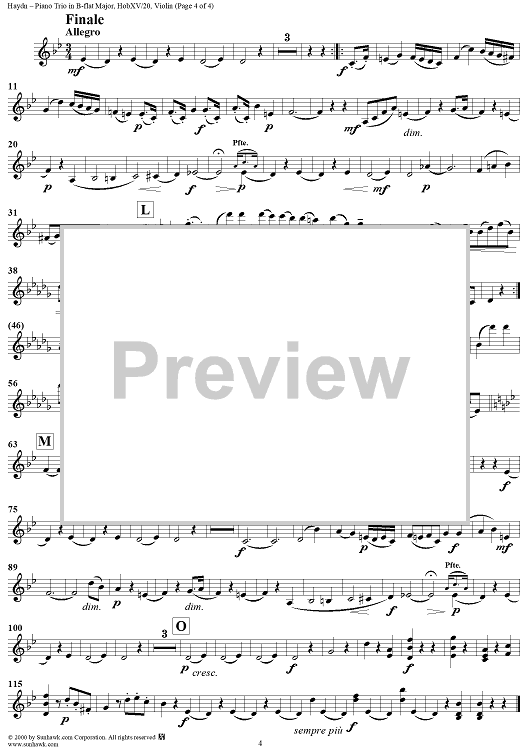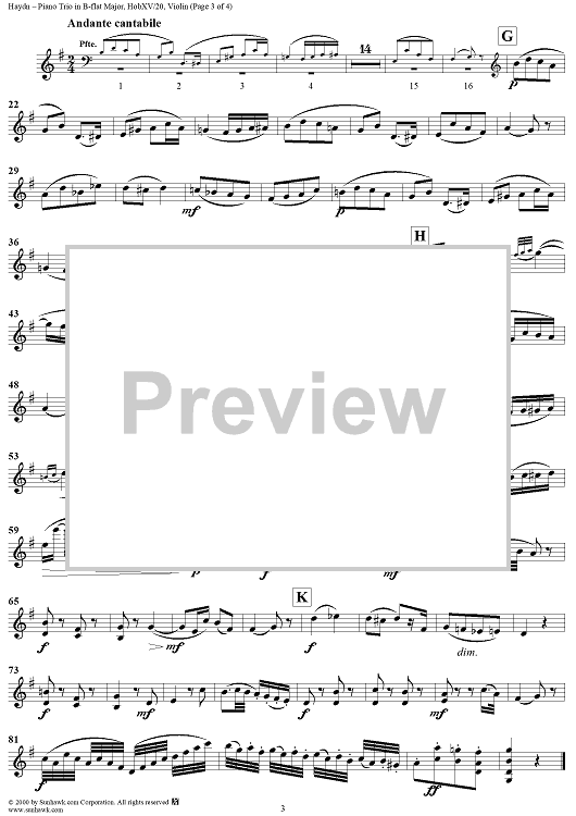 Digital Sheet Music for Piano Trio in B-flat major - HobXV/20 - Violin by Franz Joseph Haydn scored for Piano Trio; id:265668