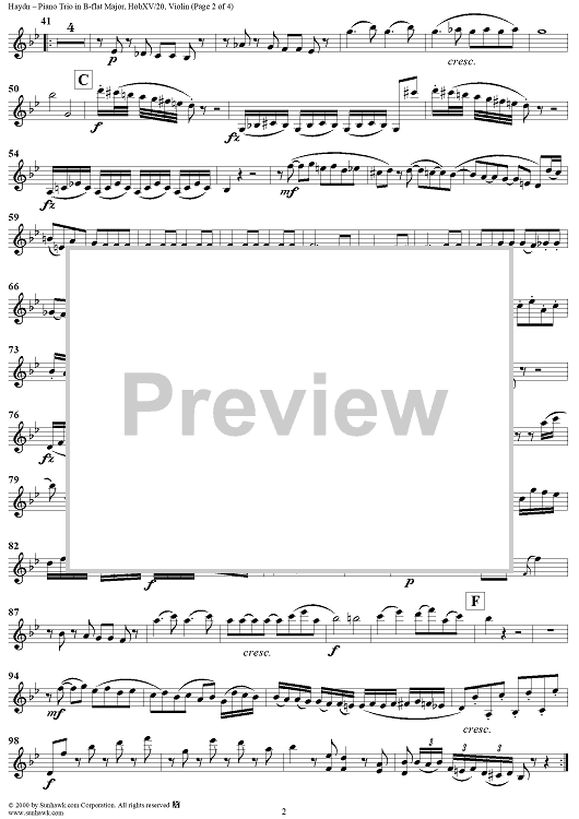 "Piano Trio in B-flat major - HobXV/20 - Violin" Sheet Music by Franz Joseph Haydn