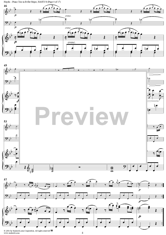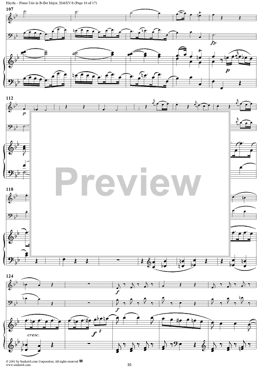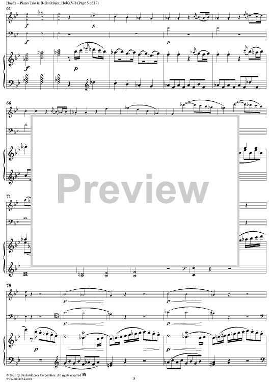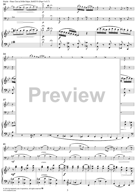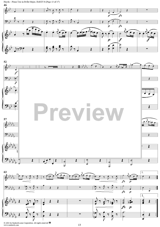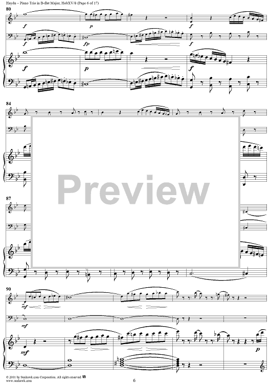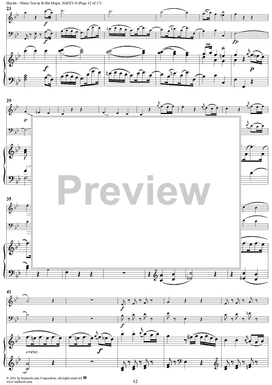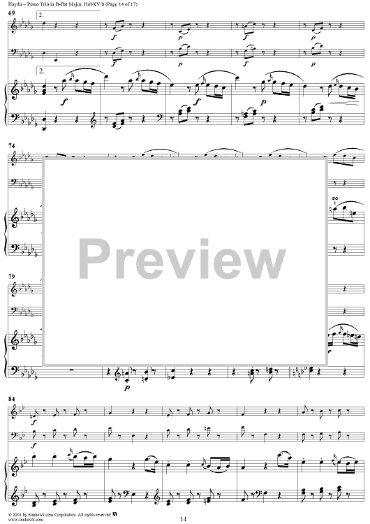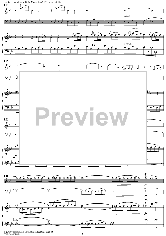 Digital Sheet Music for Piano Trio in B-flat Major, HobXV/8 - Piano Score by Franz Joseph Haydn scored for Piano Trio; id:266131
