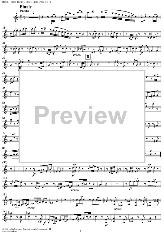 "Piano Trio in C Major (HobXV/27) - Violin" Sheet Music by Franz Joseph Haydn