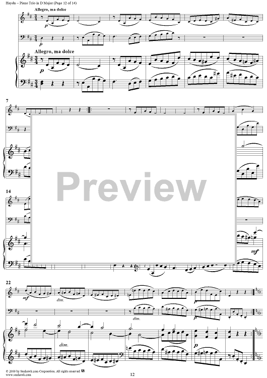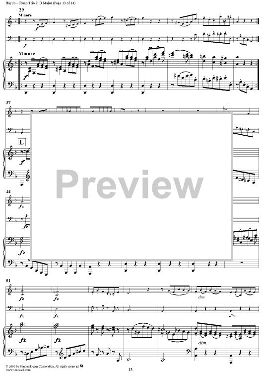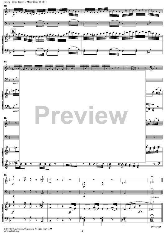 Digital Sheet Music for Piano Trio in D Major (HobXV/24) - Piano by Franz Joseph Haydn scored for Piano Trio; id:240796