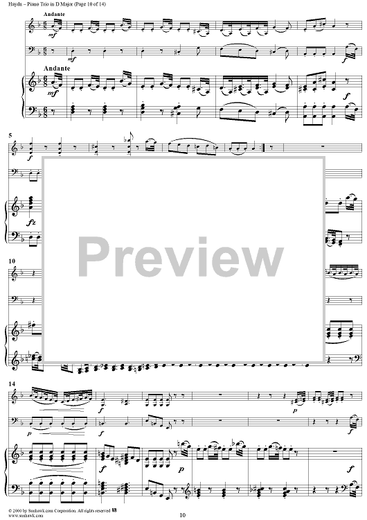 "Piano Trio in D Major (HobXV/24) - Piano" Sheet Music by Franz Joseph Haydn