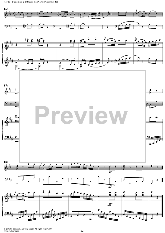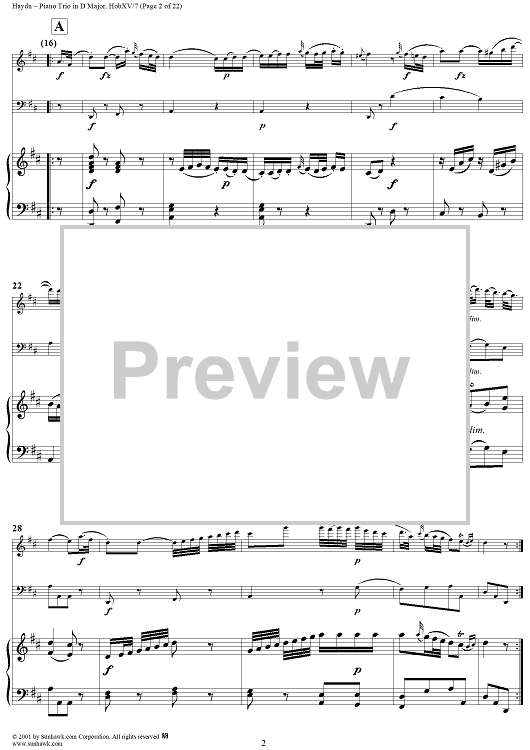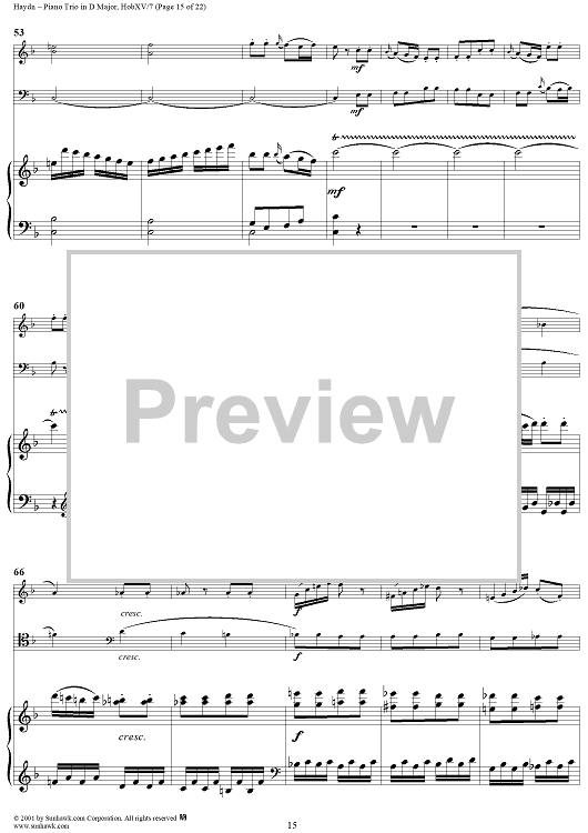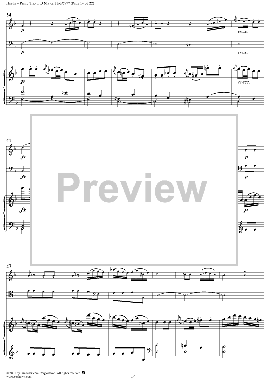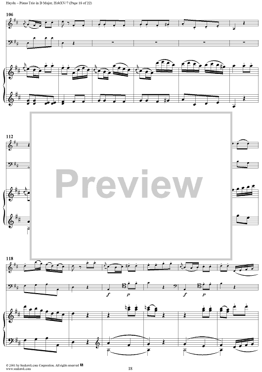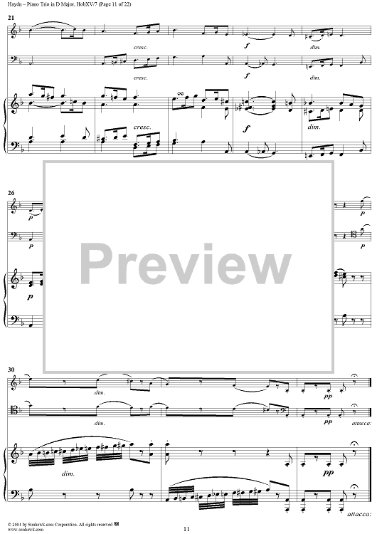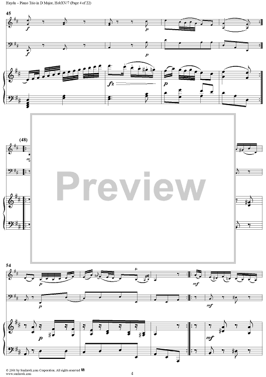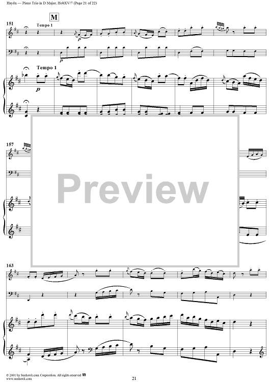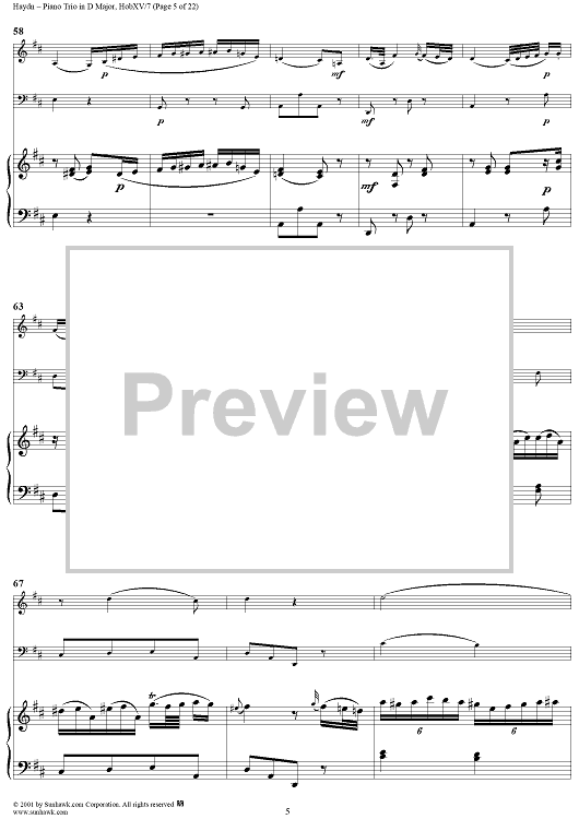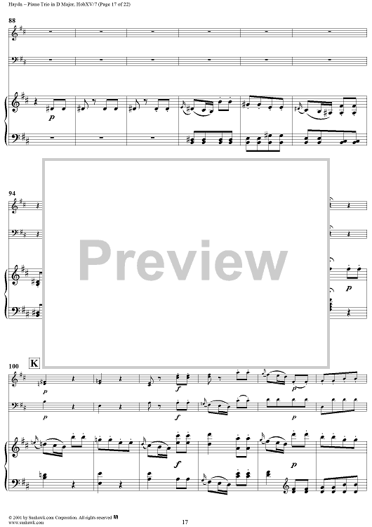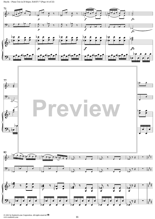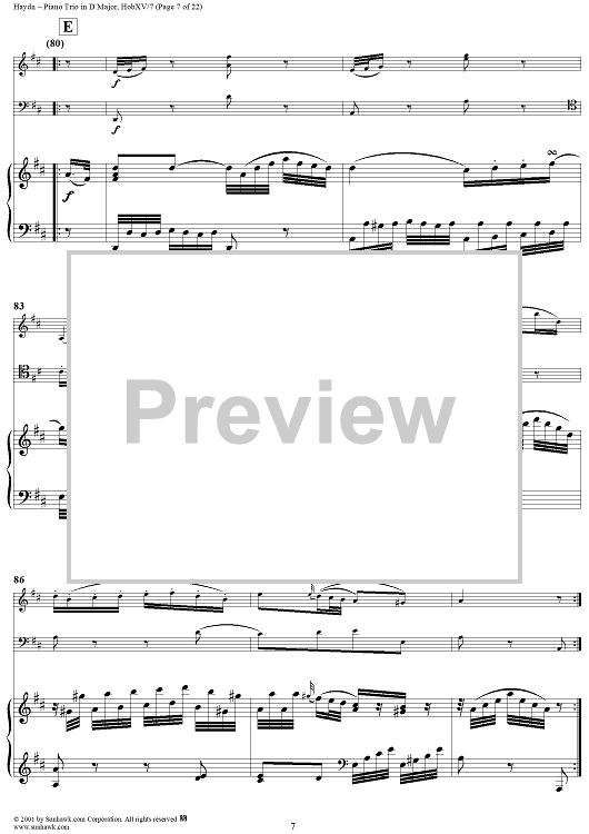 Digital Sheet Music for Piano Trio in D Major, HobXV/7 - Piano Score by Franz Joseph Haydn scored for Piano Trio; id:265938