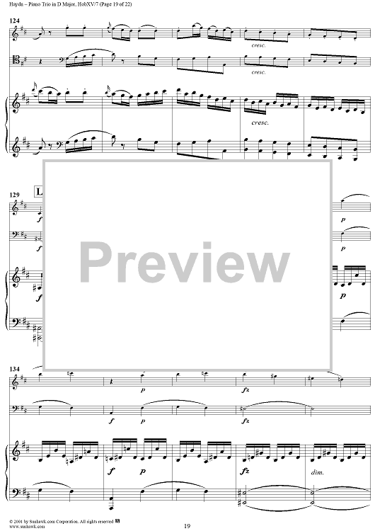 "Piano Trio in D Major, HobXV/7 - Piano Score" Sheet Music by Franz Joseph Haydn