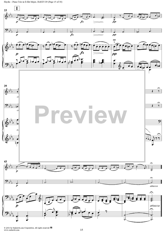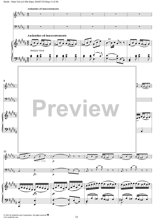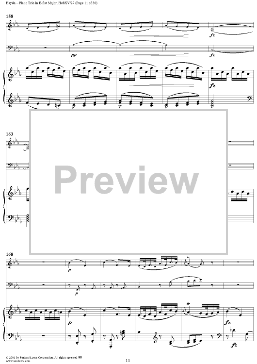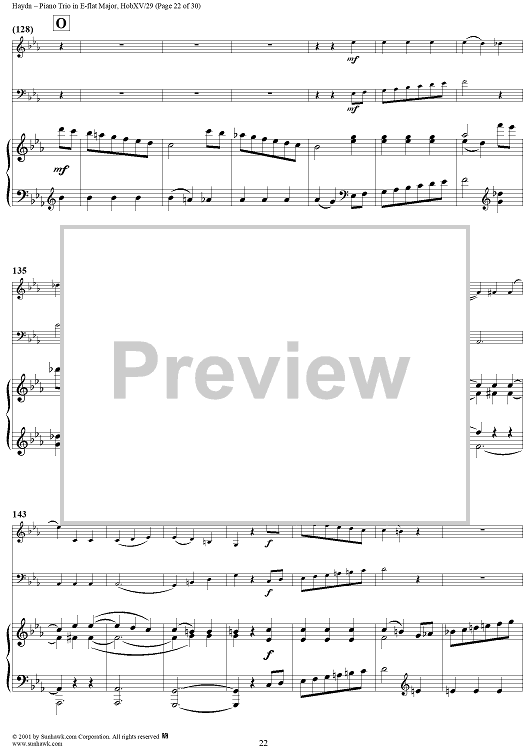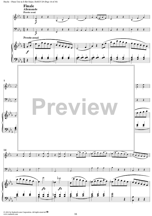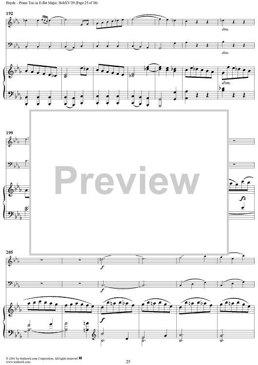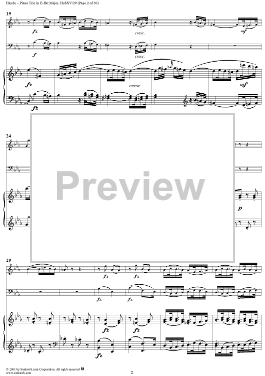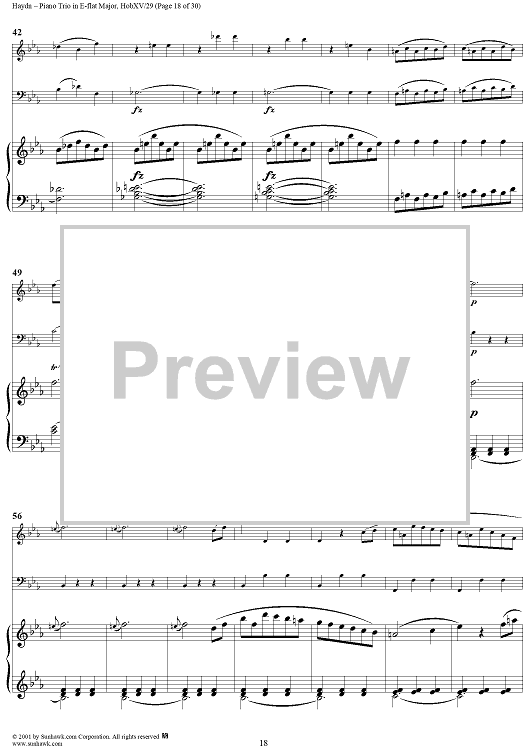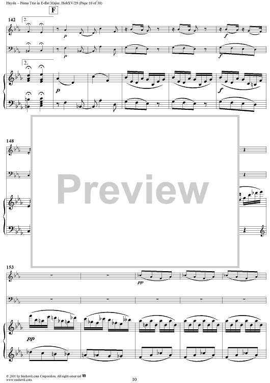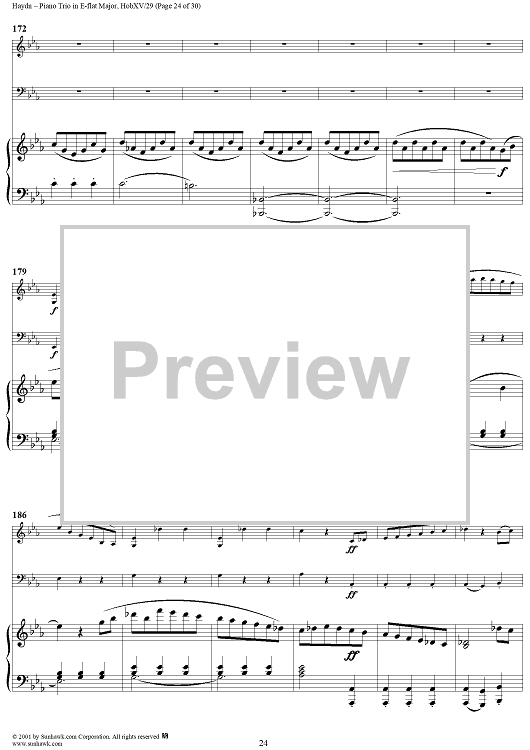 Digital Sheet Music for Piano Trio in E-flat Major, HobXV/29 - Piano Score by Franz Joseph Haydn scored for Piano Trio; id:265653