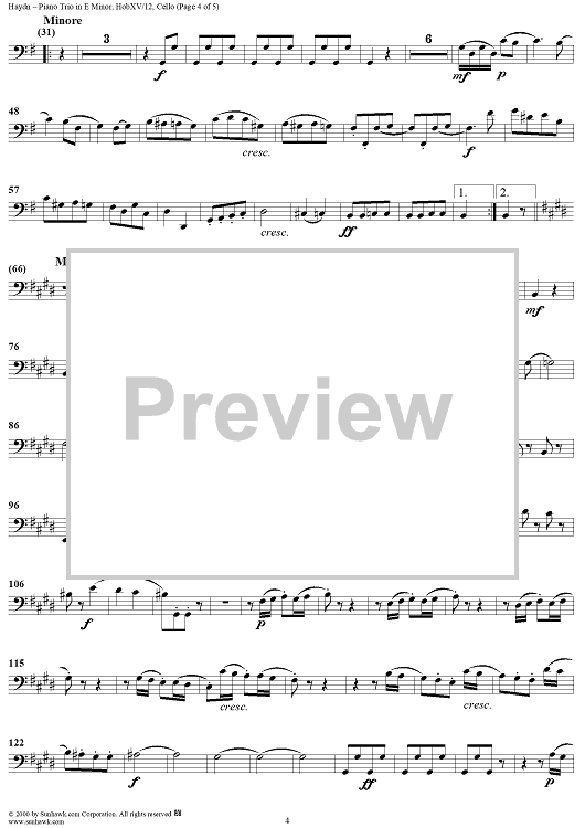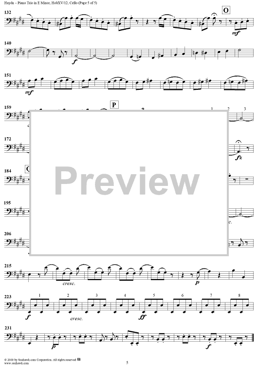 "Piano Trio in E minor - HobXV/12 - Cello" Sheet Music by Franz Joseph Haydn