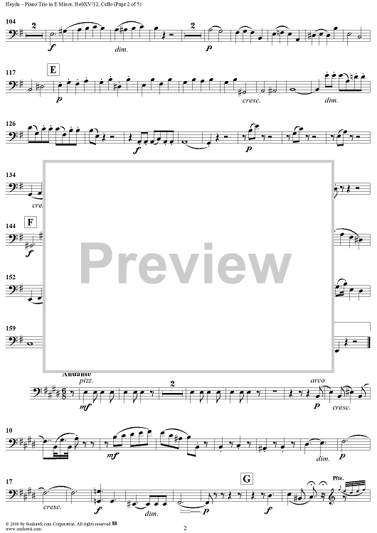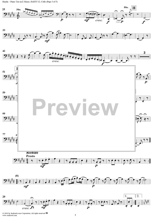 Digital Sheet Music for Piano Trio in E minor - HobXV/12 - Cello by Franz Joseph Haydn scored for Piano Trio; id:265655