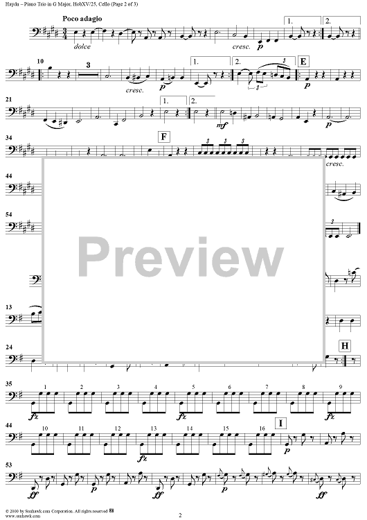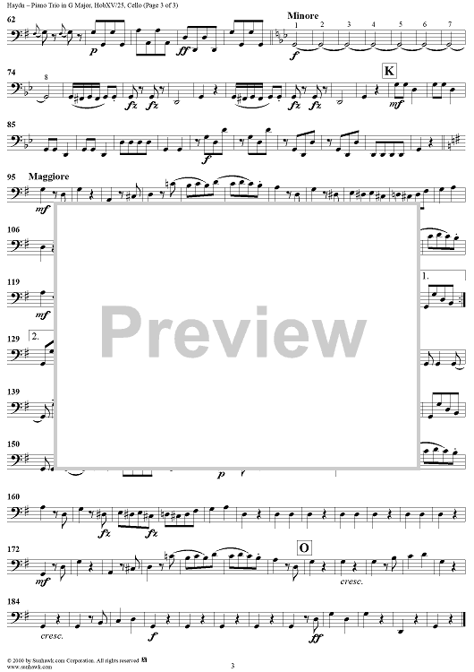 Digital Sheet Music for Piano Trio in G Major ("Gypsy Trio"), HobXV/25 - Cello by Franz Joseph Haydn scored for Piano Trio; id:241182