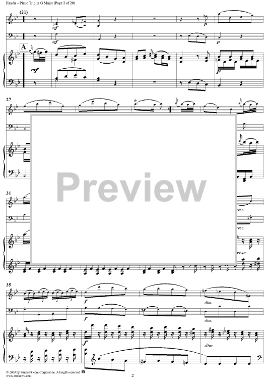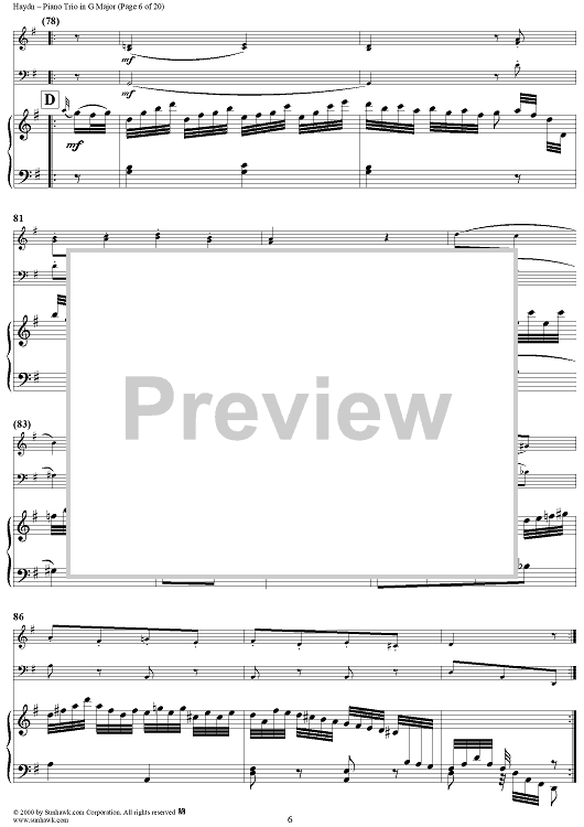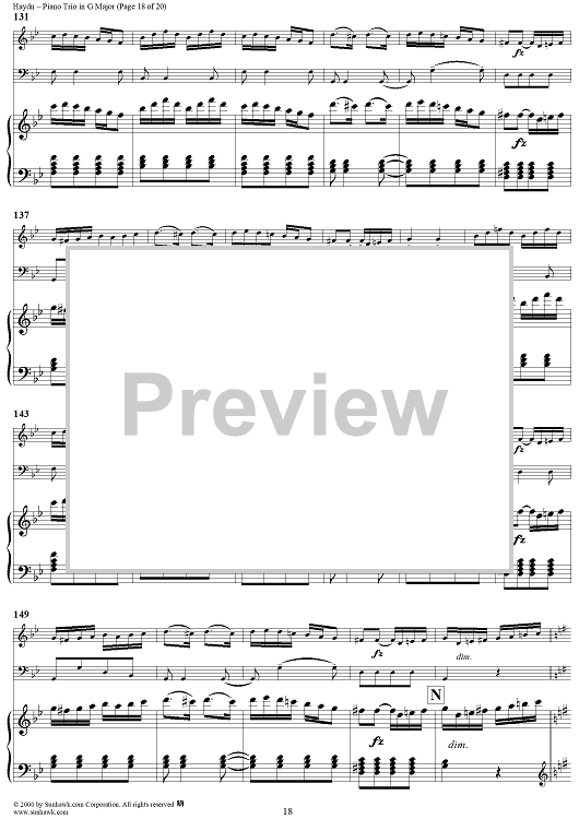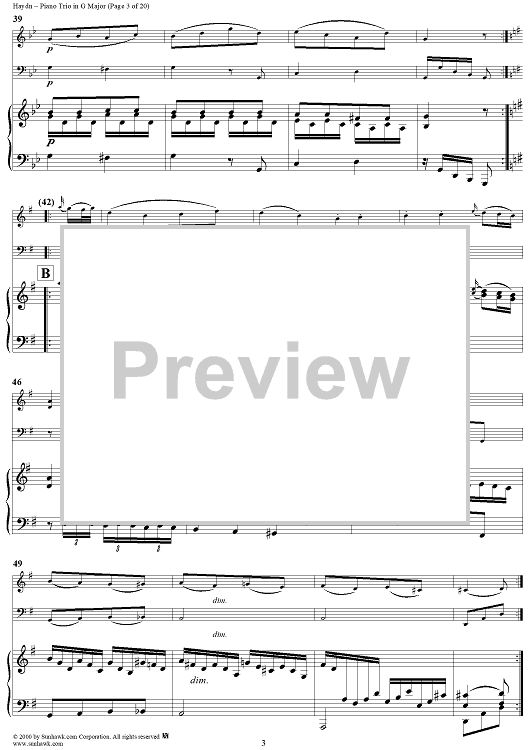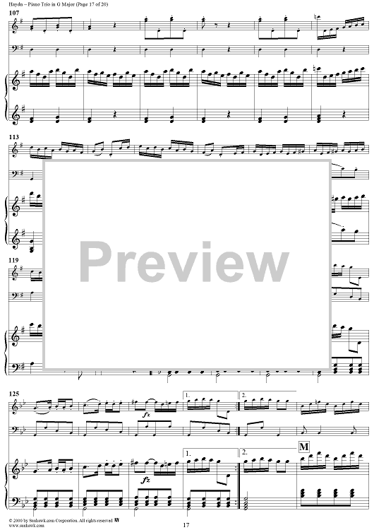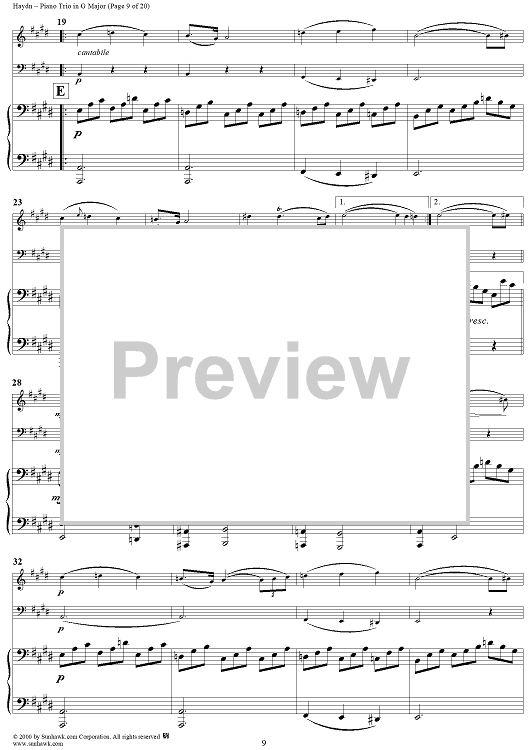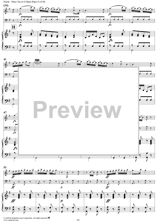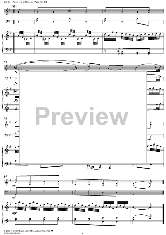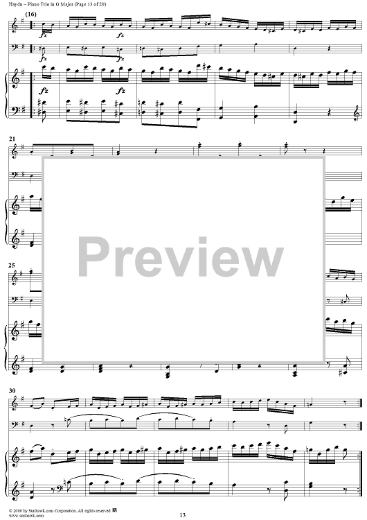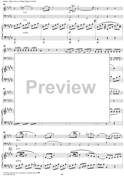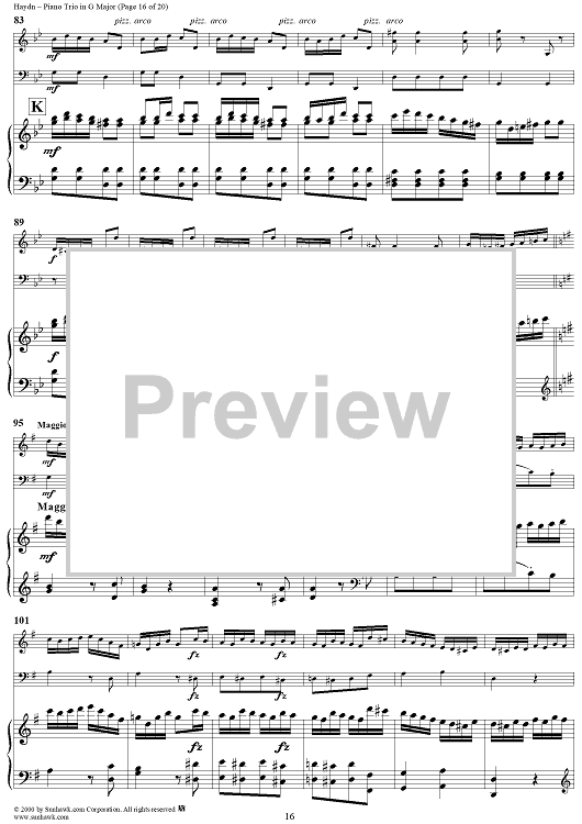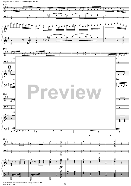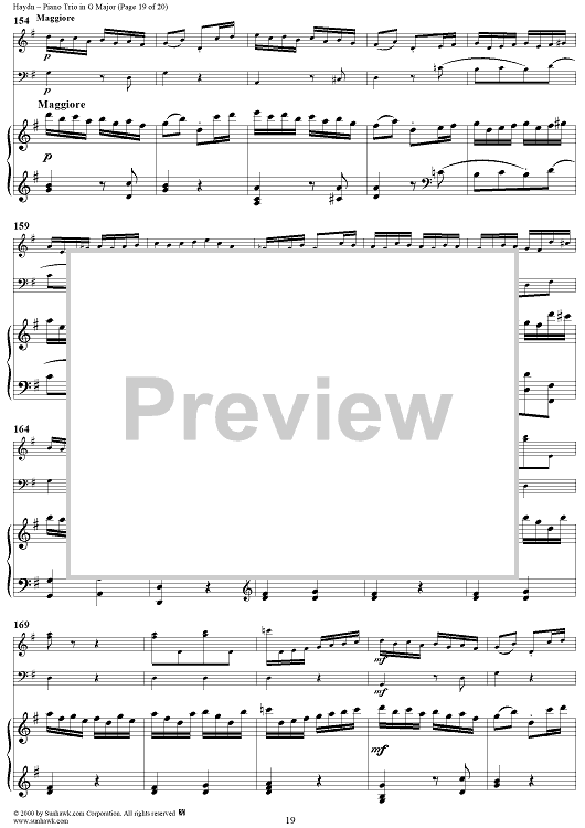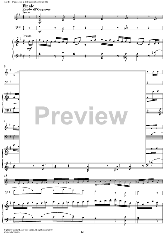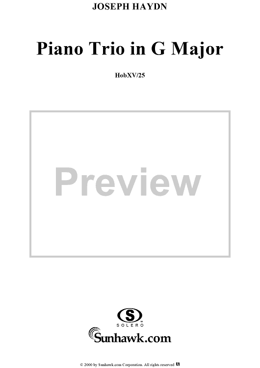 Digital Sheet Music for Piano Trio in G Major ("Gypsy Trio"), HobXV/25 - Piano Score by Franz Joseph Haydn scored for Piano Trio; id:241180