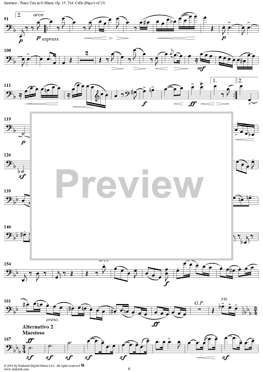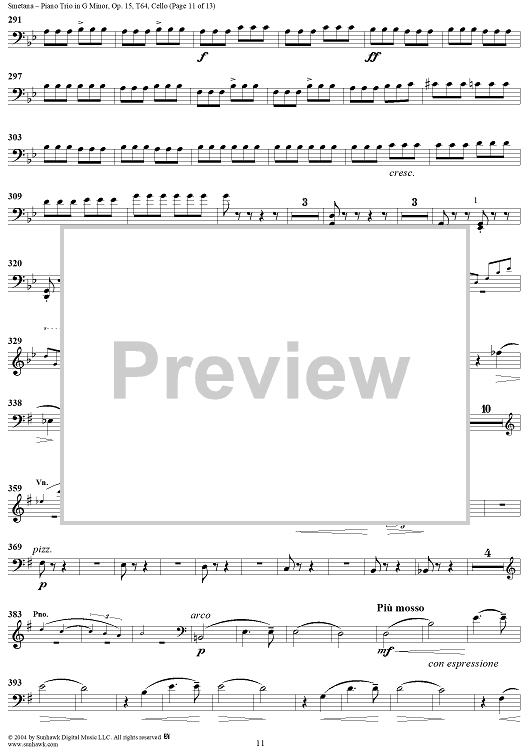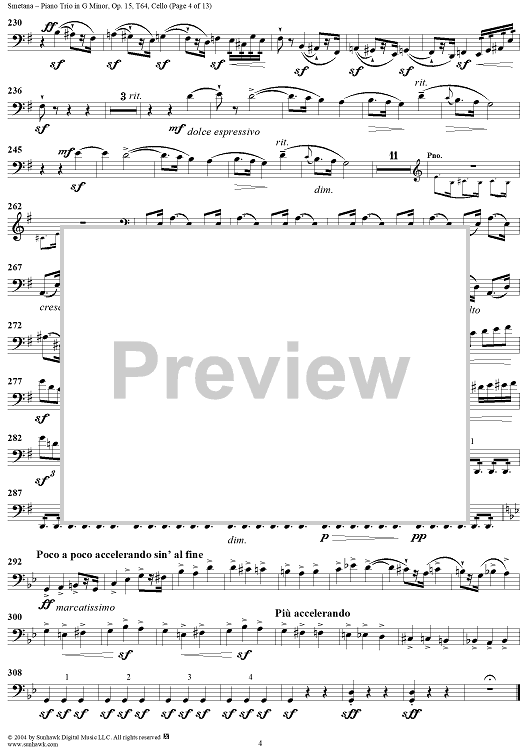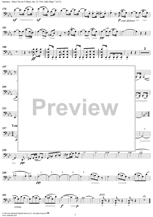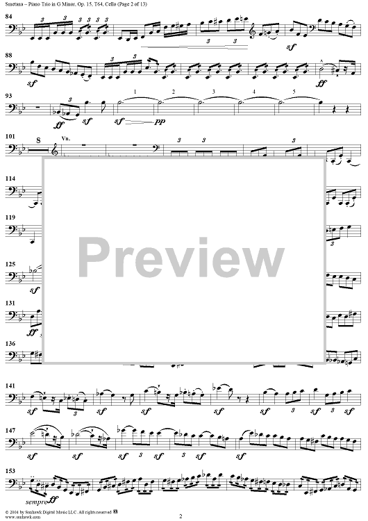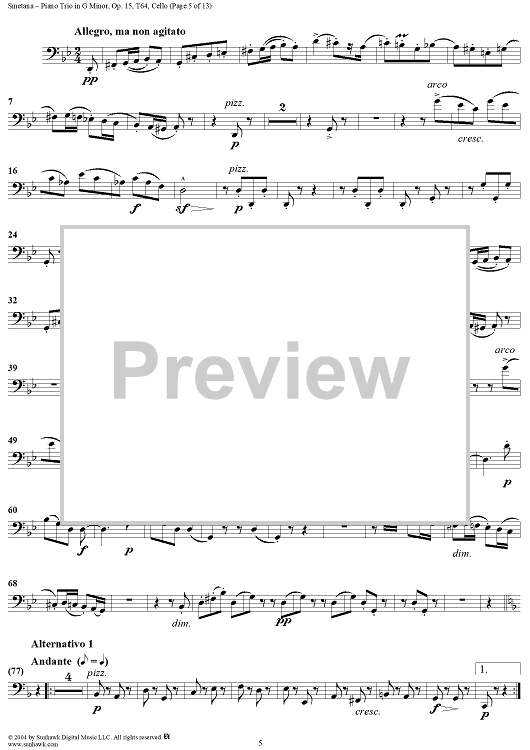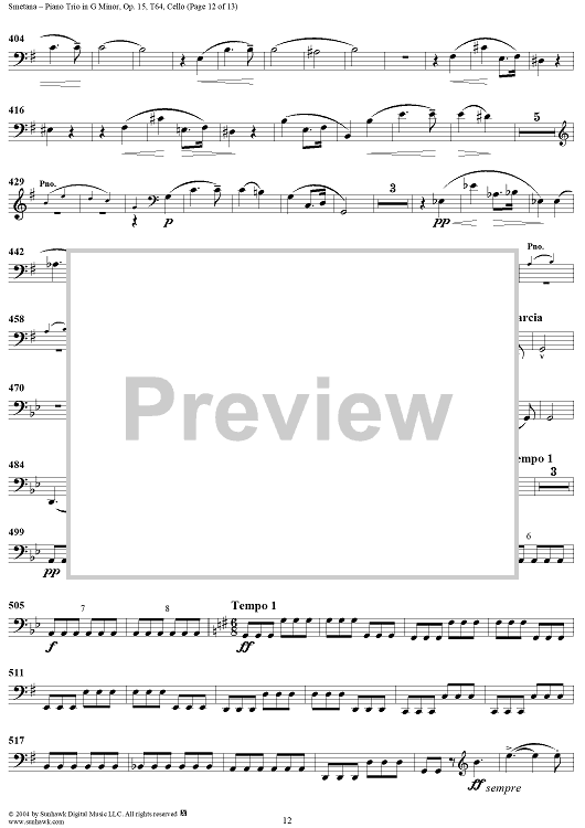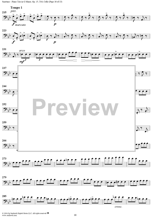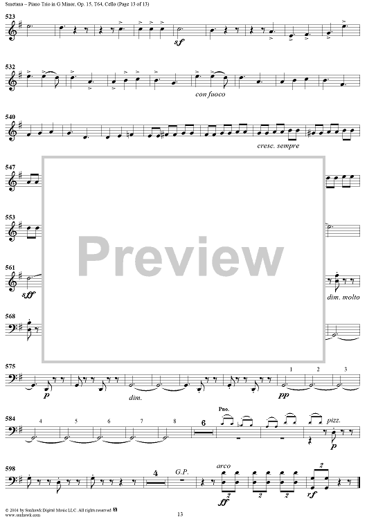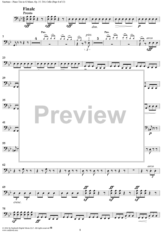 "Piano Trio in G Minor, Op. 15 - Cello" Sheet Music by Bedrich Smetana