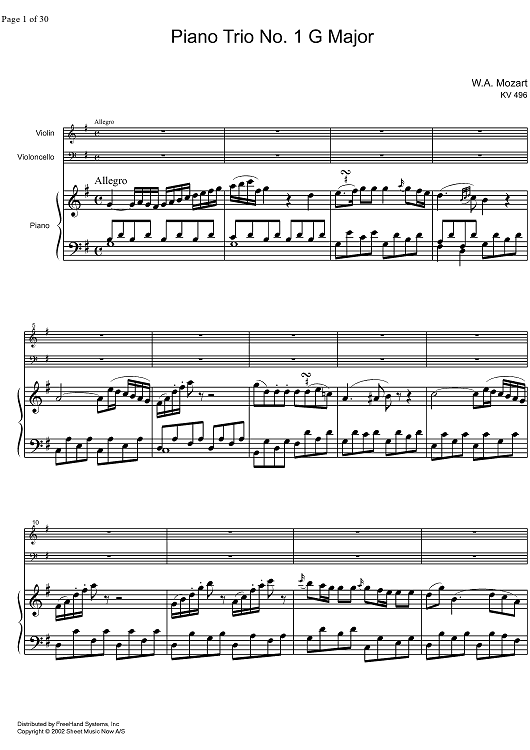 Digital Sheet Music for Piano Trio No. 1 G Major KV496 - Score by Wolfgang Amadeus Mozart scored for PianoTrio; id:333352