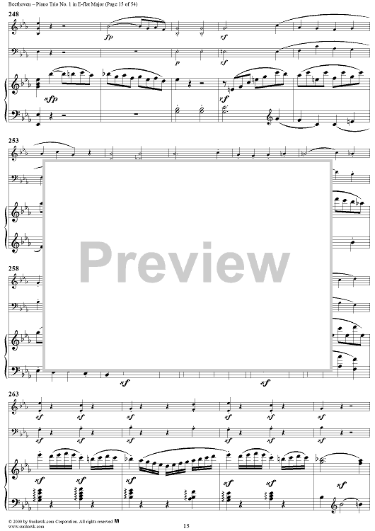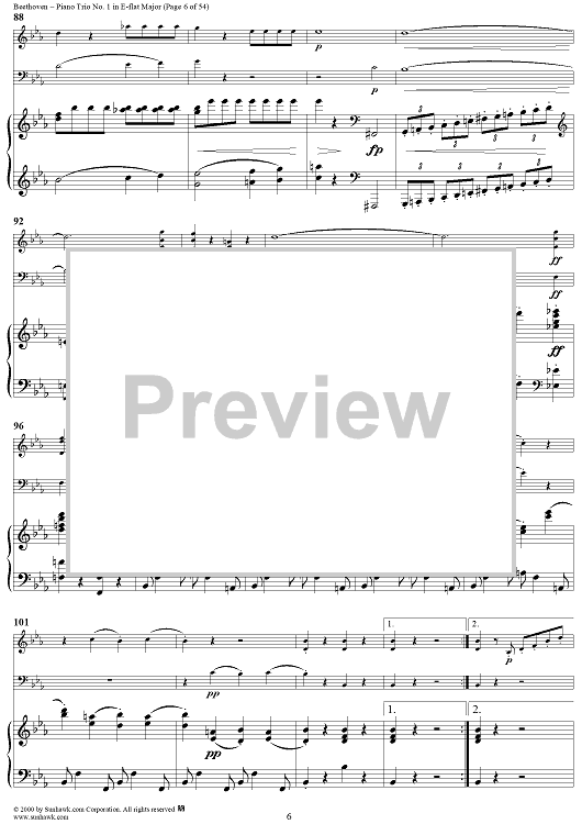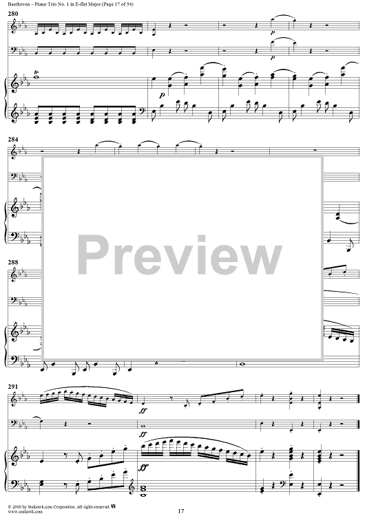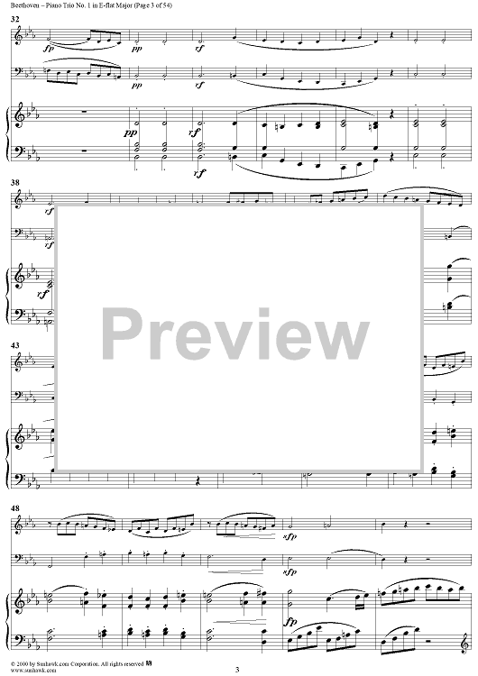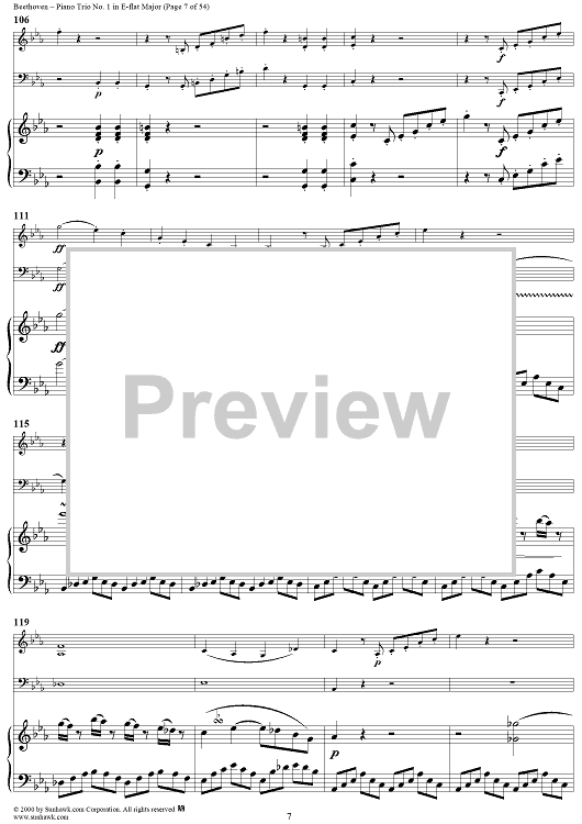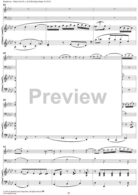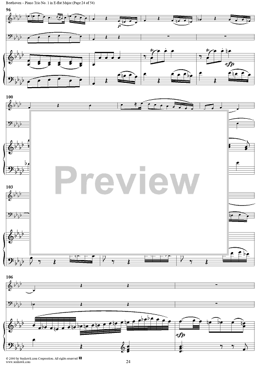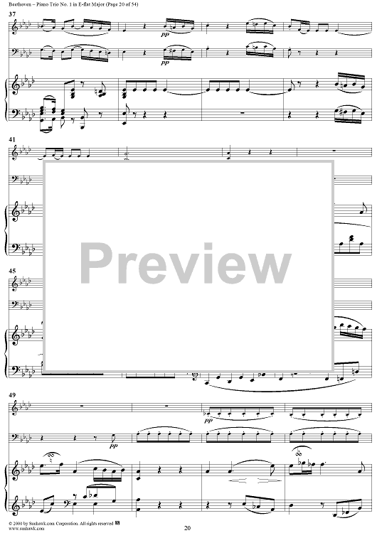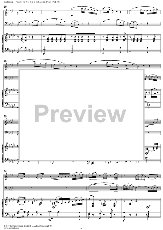 Digital Sheet Music for Piano Trio No. 1 in E-flat Major, Op. 1, No. 1 - Piano Score by Ludwig van Beethoven scored for Piano Trio; id:275182