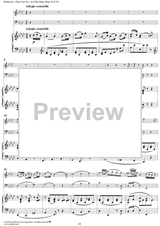 "Piano Trio No. 1 in E-flat Major, Op. 1, No. 1 - Piano Score" Sheet Music by Ludwig van Beethoven