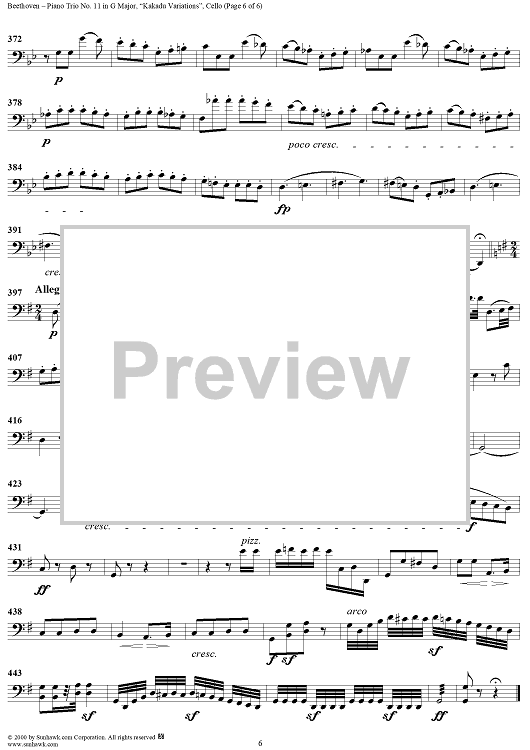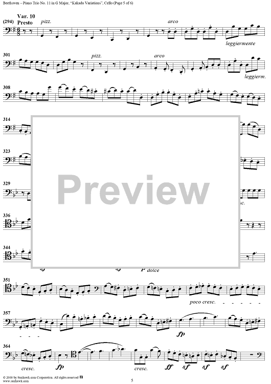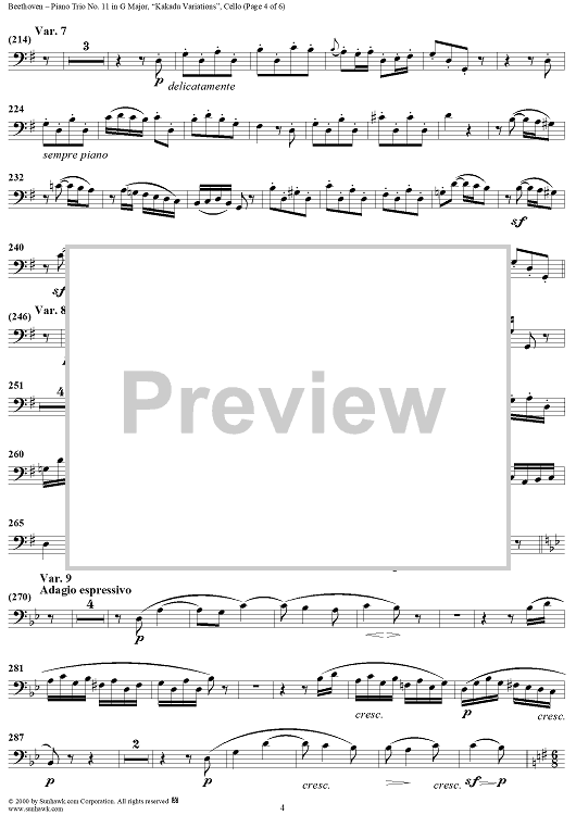 Digital Sheet Music for Piano Trio No. 11 in G Major, "Kakadu Variations" - Cello by Ludwig van Beethoven scored for Piano Trio; id:275516