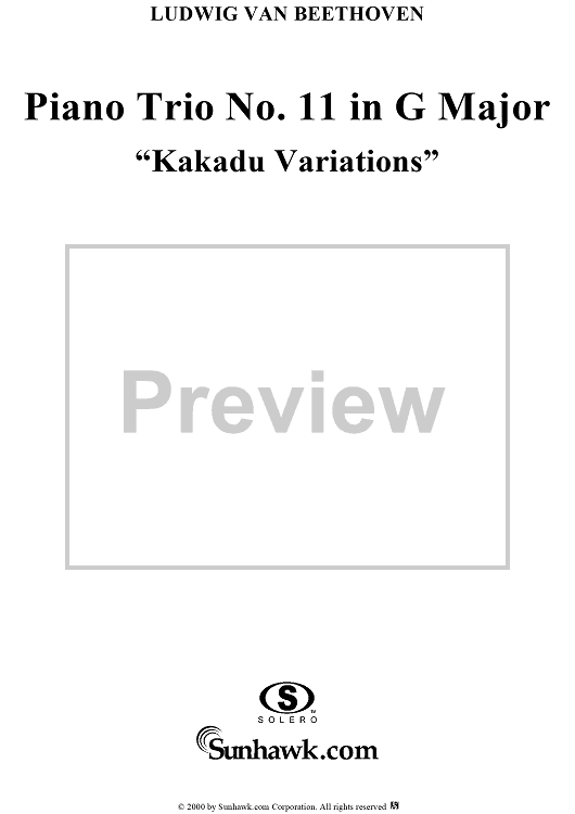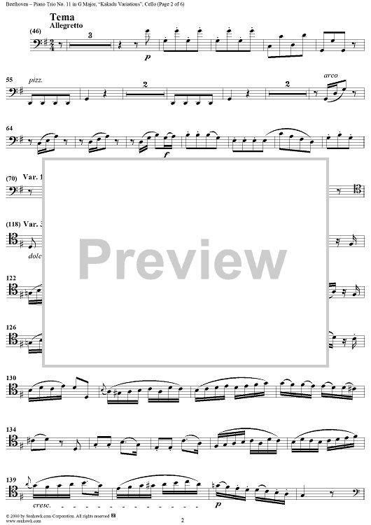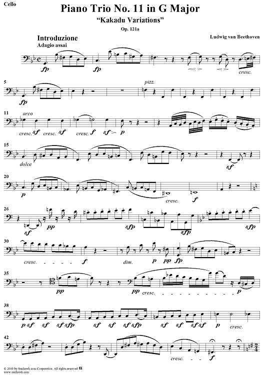 "Piano Trio No. 11 in G Major, "Kakadu Variations" - Cello" Sheet Music by Ludwig van Beethoven