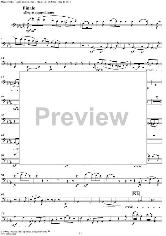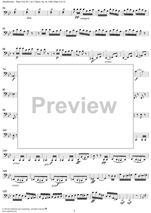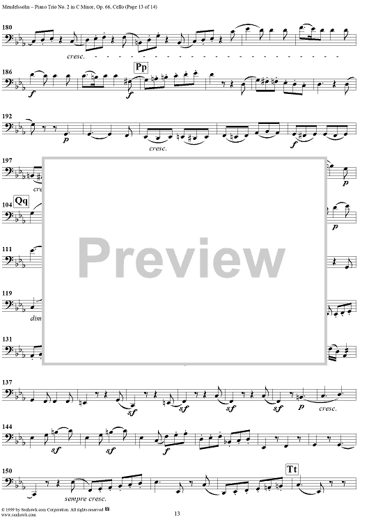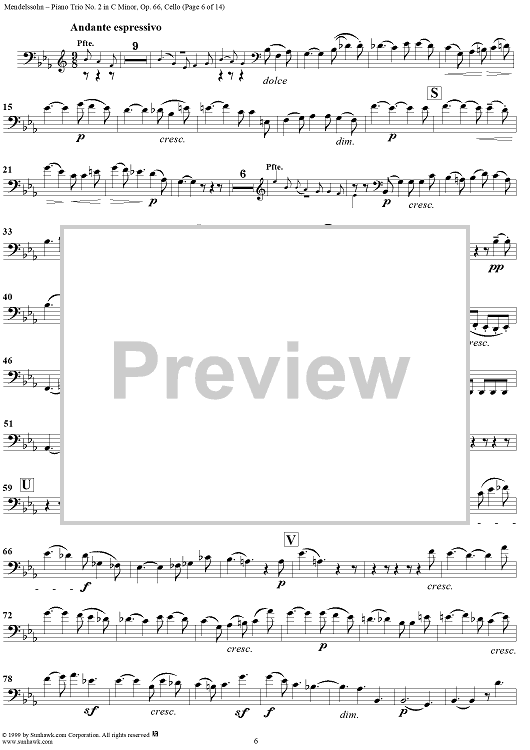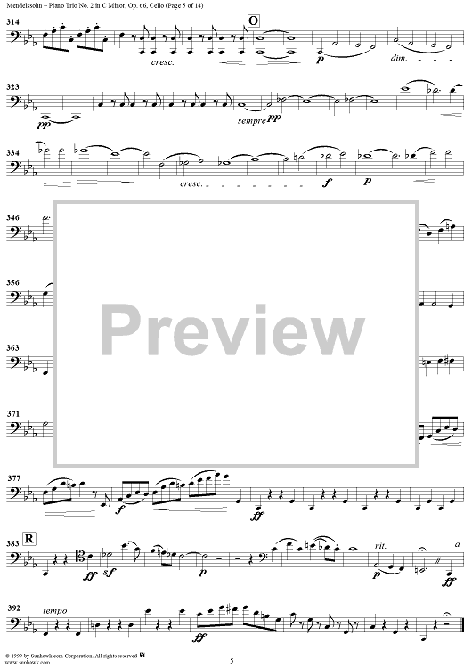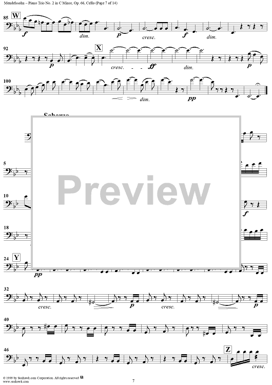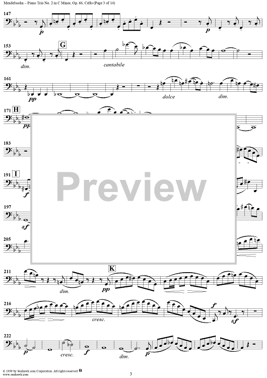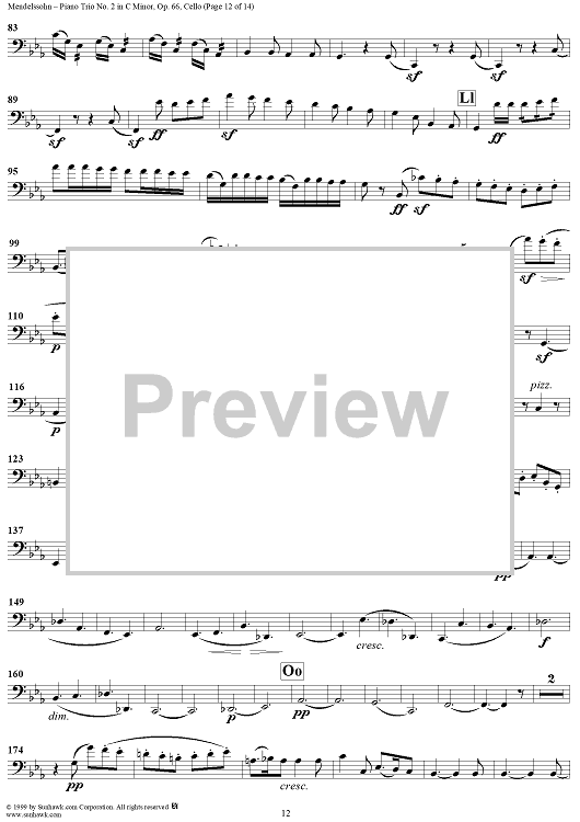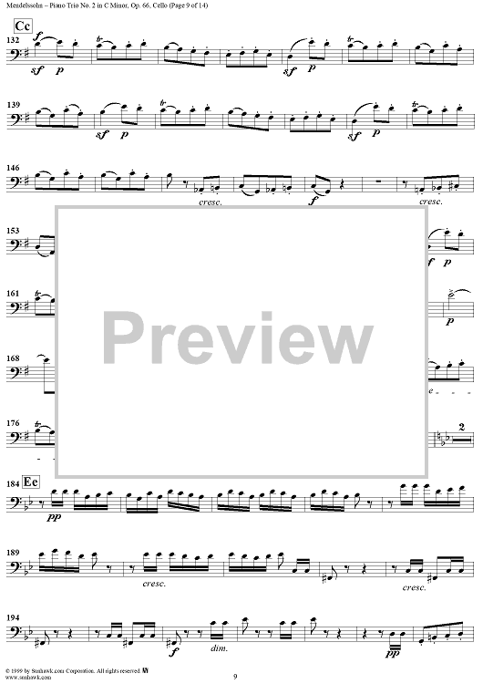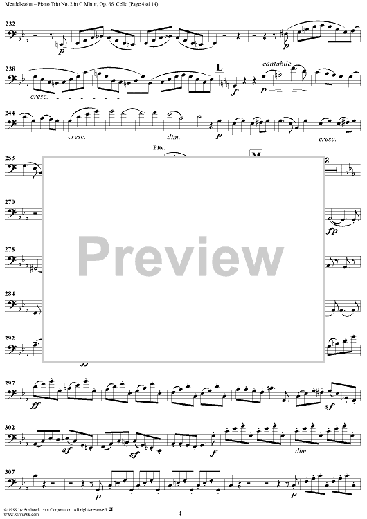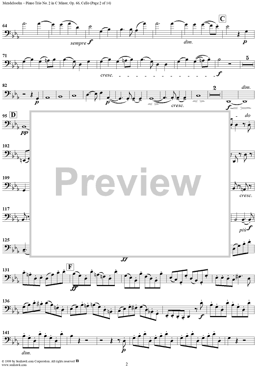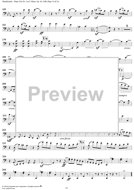 "Piano Trio No. 2 - Cello" Sheet Music by Felix Mendelssohn