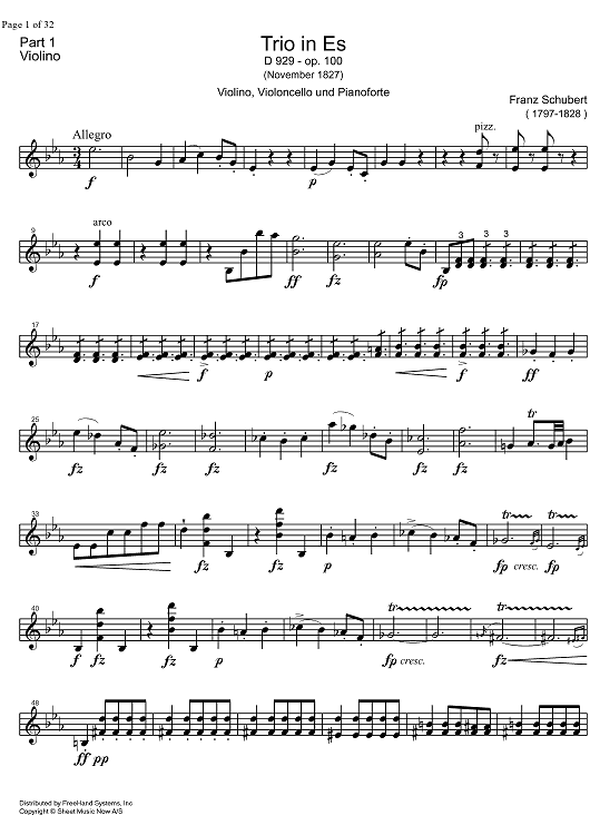 "Piano Trio No. 2 Eb Major D929 - Violin" Sheet Music by Franz Schubert