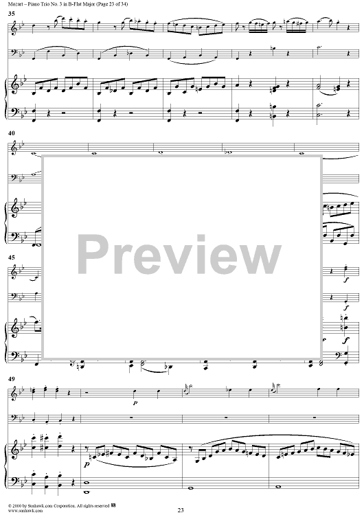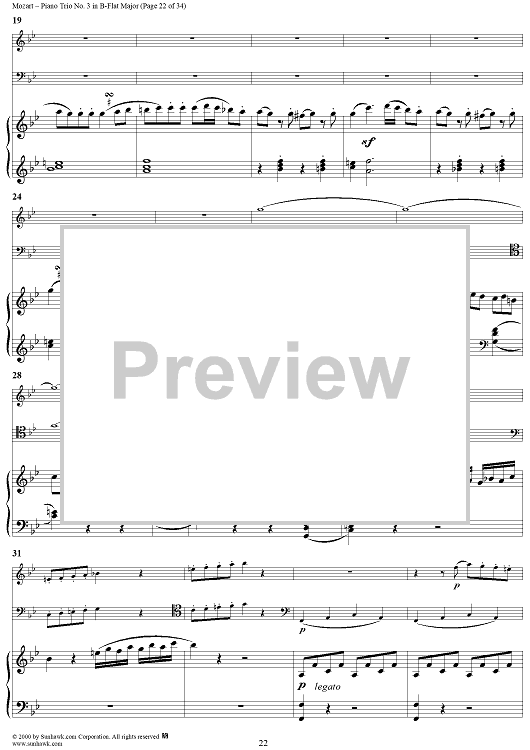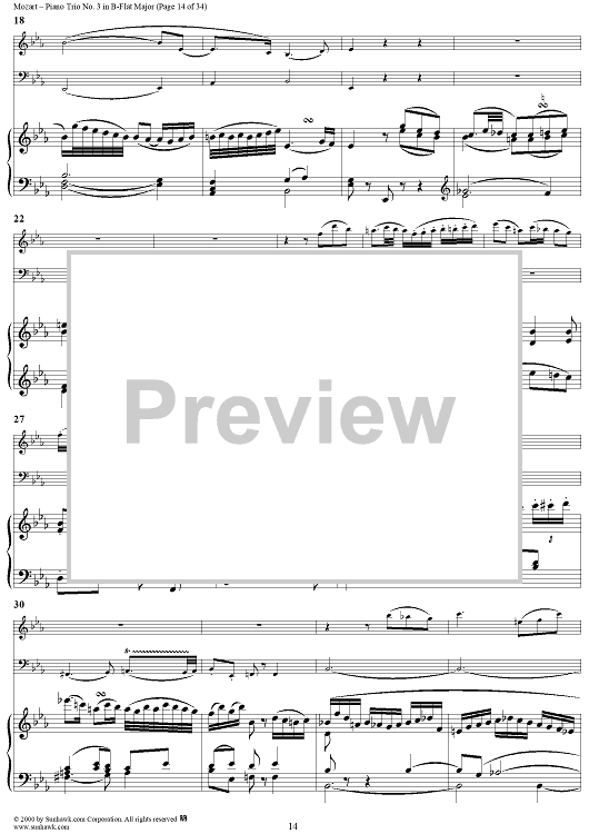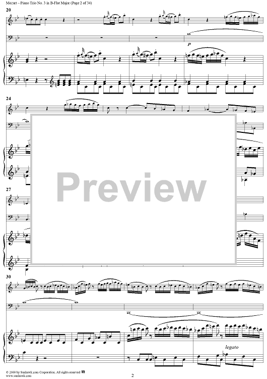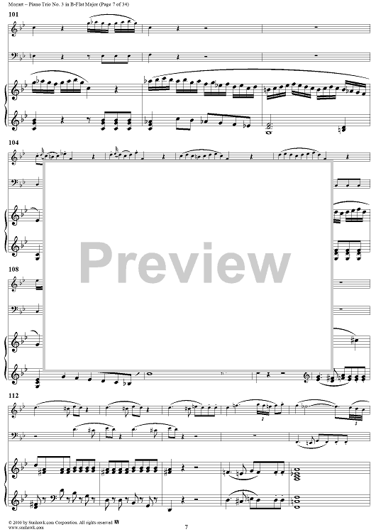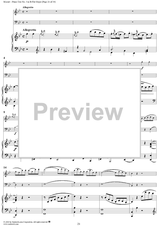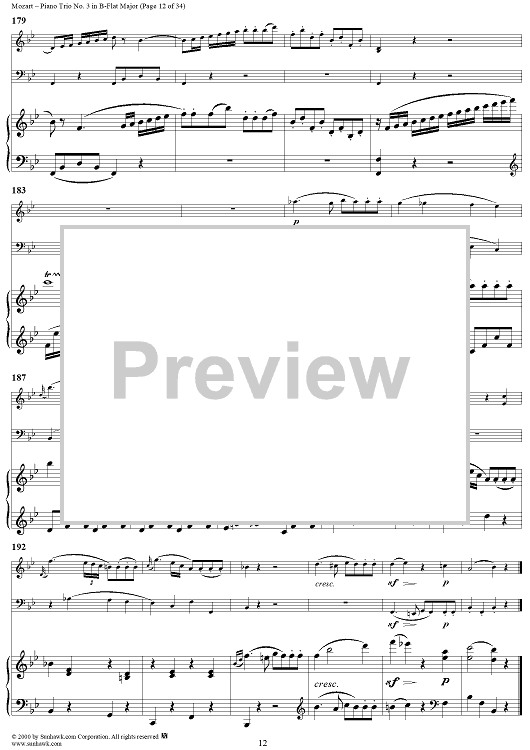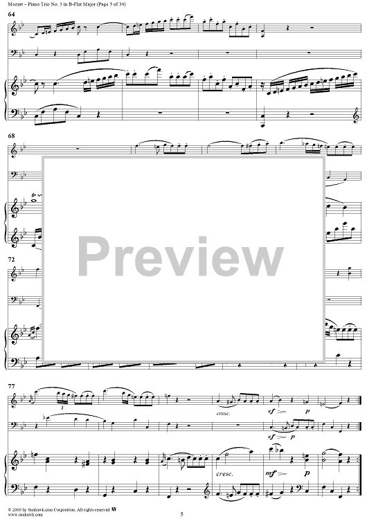 Digital Sheet Music for Piano Trio No. 3 in B-flat Major K502 - Piano Score by Wolfgang Amadeus Mozart scored for Piano Trio; id:255349