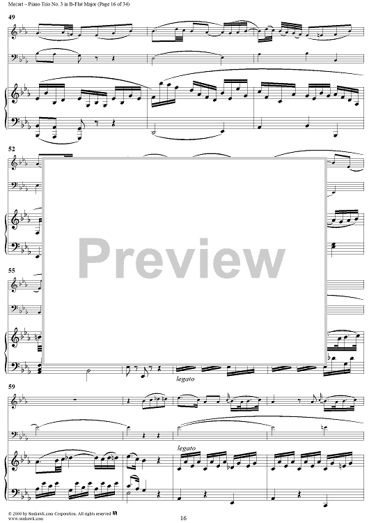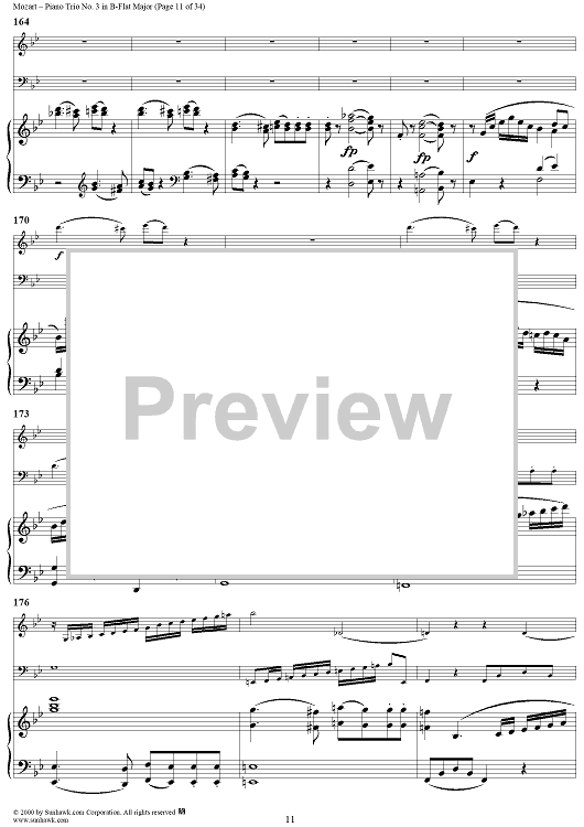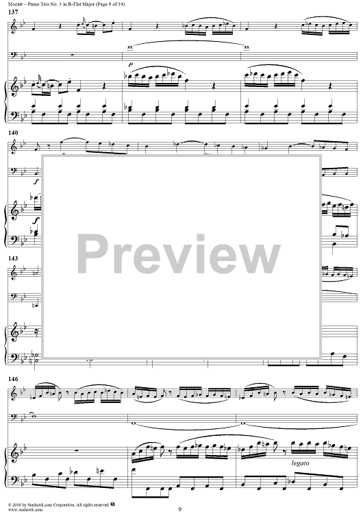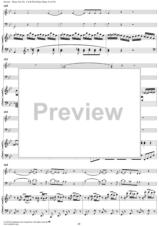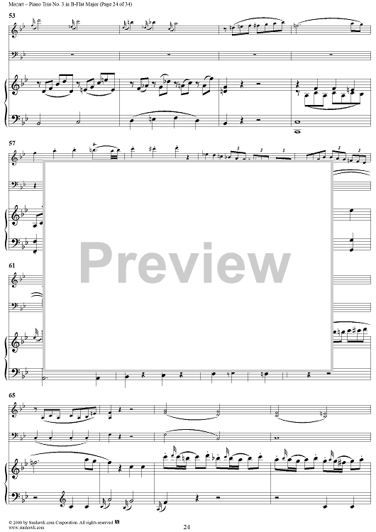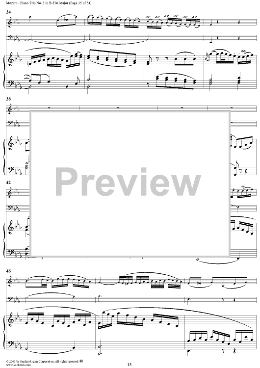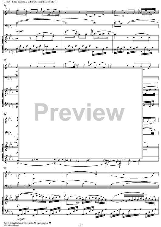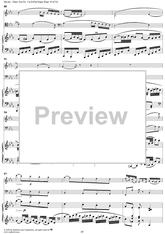 Digital Sheet Music for Piano Trio No. 3 in B-flat Major K502 - Piano Score by Wolfgang Amadeus Mozart scored for Piano Trio; id:255349