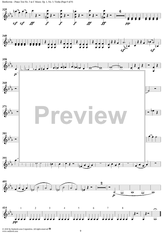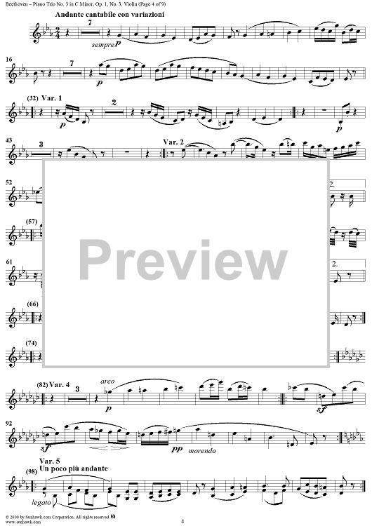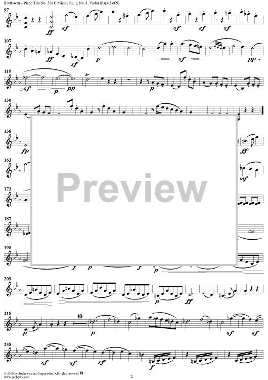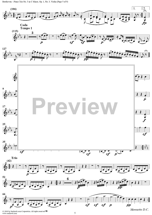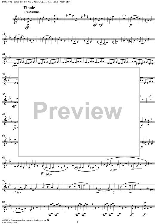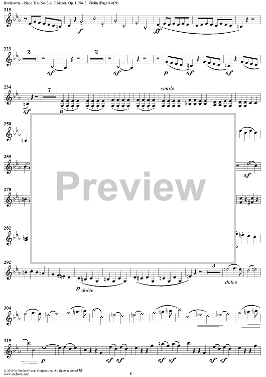 Digital Sheet Music for Piano Trio No. 3 in C Minor, Op. 1, No. 3 - Violin by Ludwig van Beethoven scored for Piano Trio; id:275286