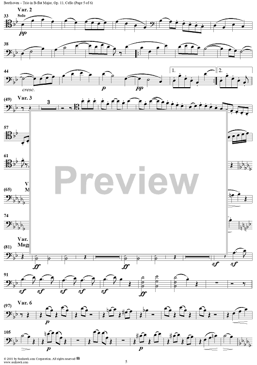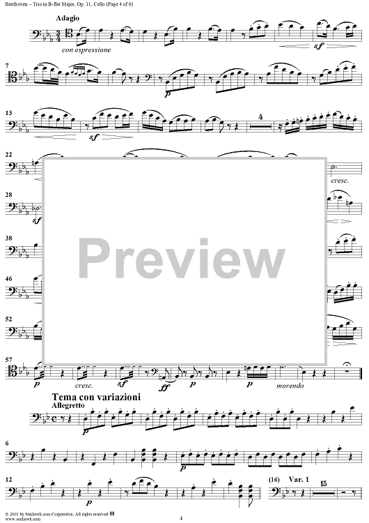 "Piano Trio No. 4 - Cello" Sheet Music by Ludwig van Beethoven