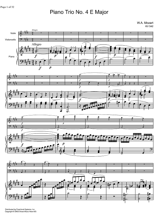 Digital Sheet Music for Piano Trio No. 4 E Major KV542 - Score by Wolfgang Amadeus Mozart scored for PianoTrio; id:333348