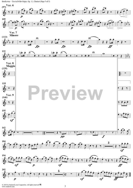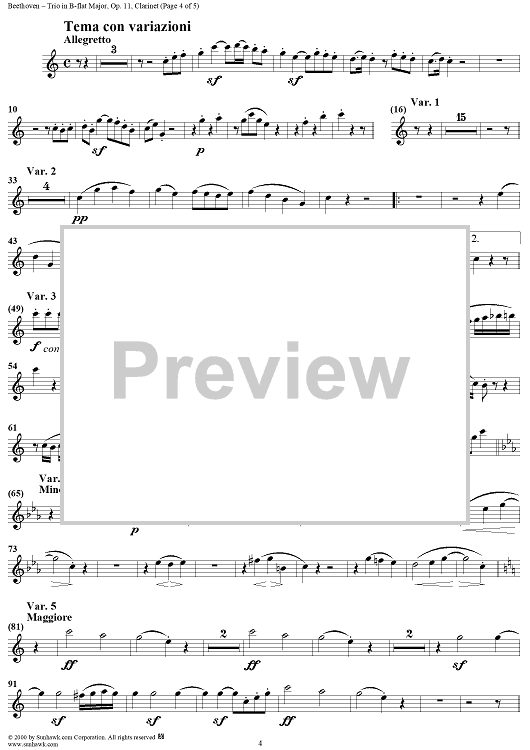 "Piano Trio No. 4 (in place of Violin) - Clarinet" Sheet Music by Ludwig van Beethoven