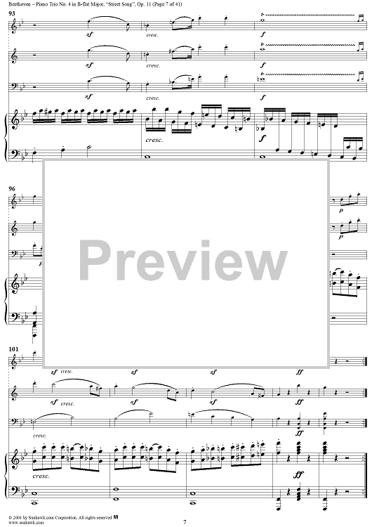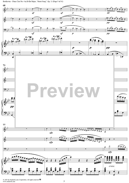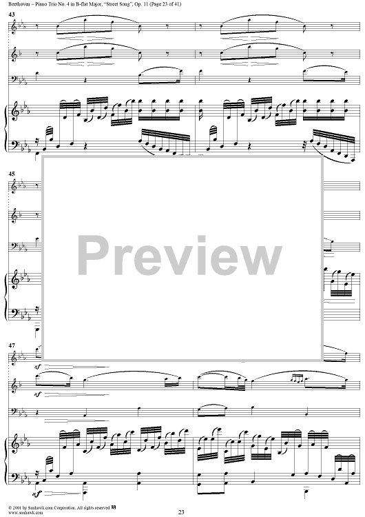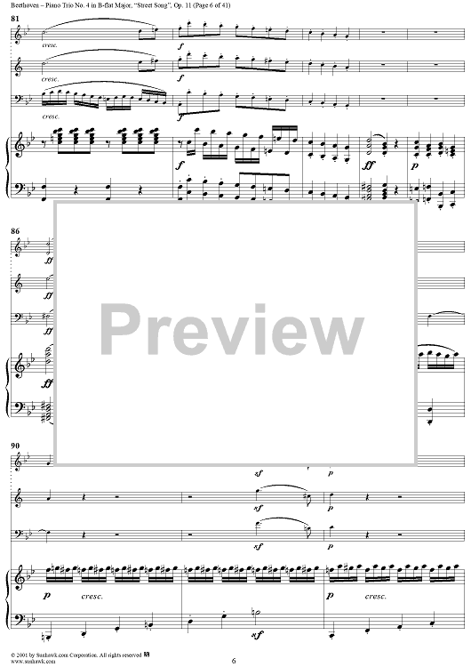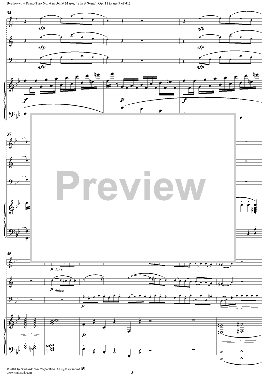 Digital Sheet Music for Piano Trio No. 4 - Piano Score by Ludwig van Beethoven scored for Piano Trio; id:270638
