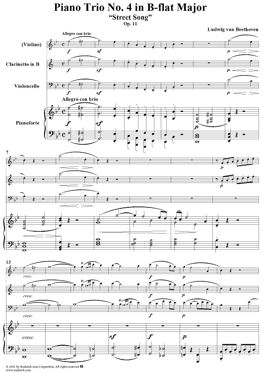 "Piano Trio No. 4 - Piano Score" Sheet Music by Ludwig van Beethoven
