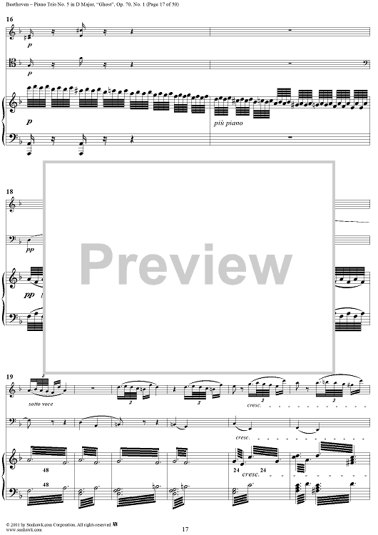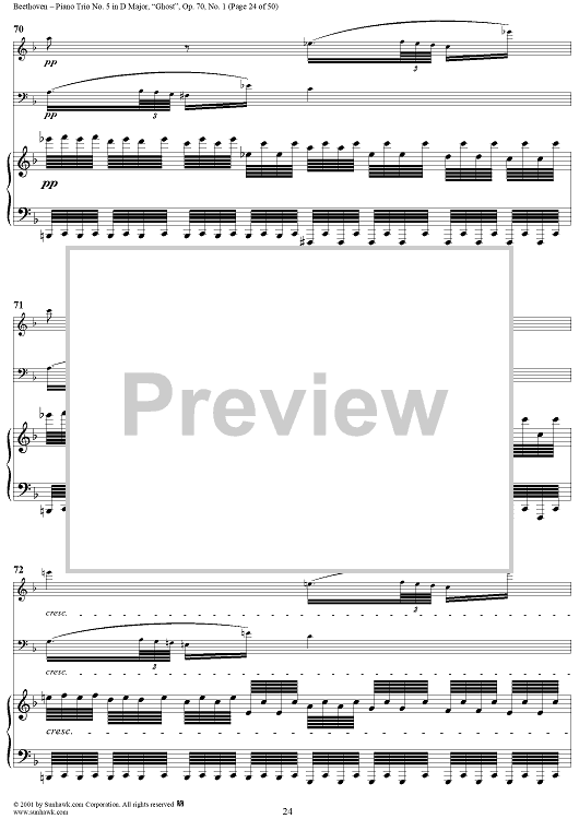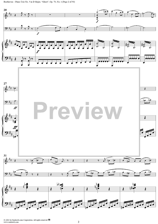 Digital Sheet Music for Piano Trio No. 5, Op. 70, No. 1 - Piano Score by Ludwig van Beethoven scored for Piano Trio; id:275171
