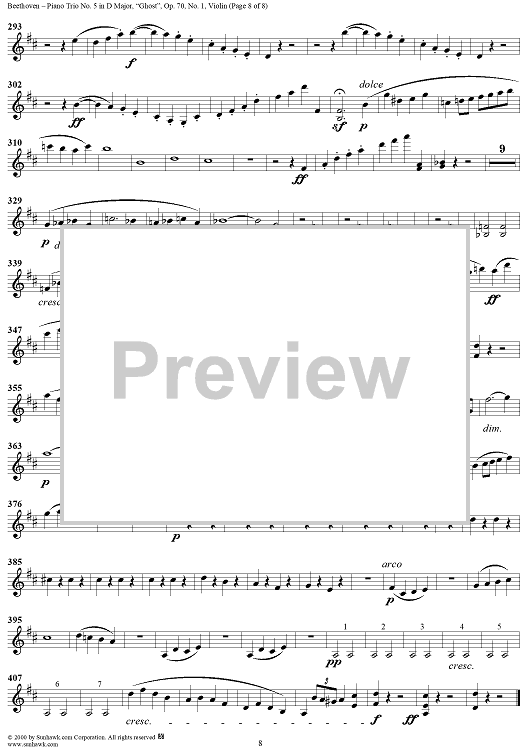 "Piano Trio No. 5, Op. 70, No. 1 - Violin" Sheet Music by Ludwig van Beethoven