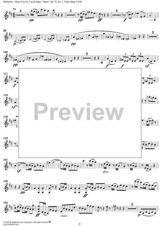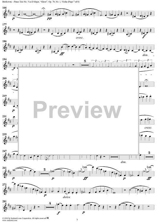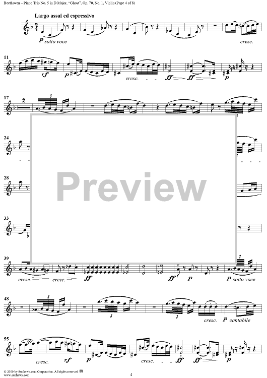 Digital Sheet Music for Piano Trio No. 5, Op. 70, No. 1 - Violin by Ludwig van Beethoven scored for Piano Trio; id:275278