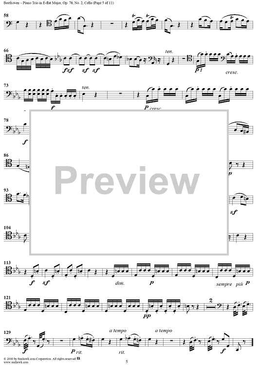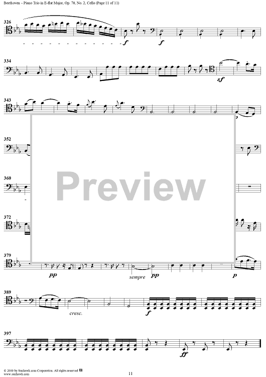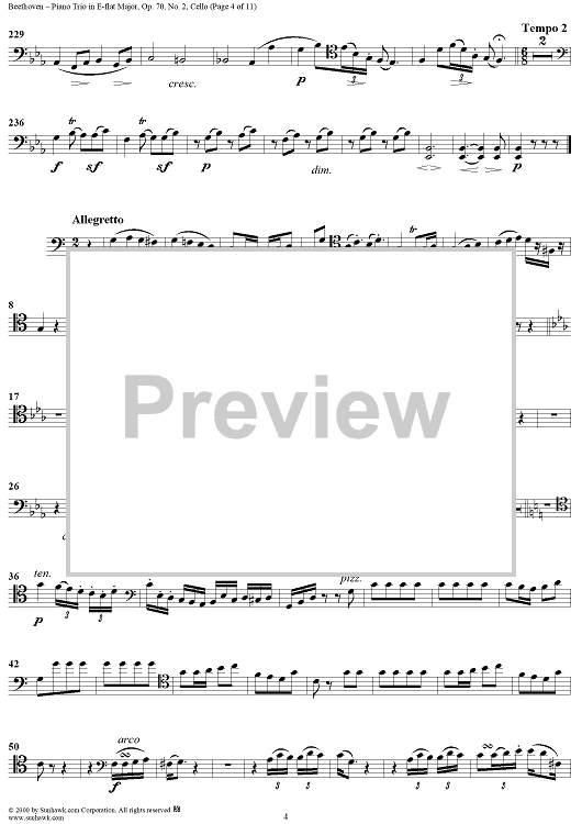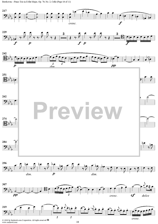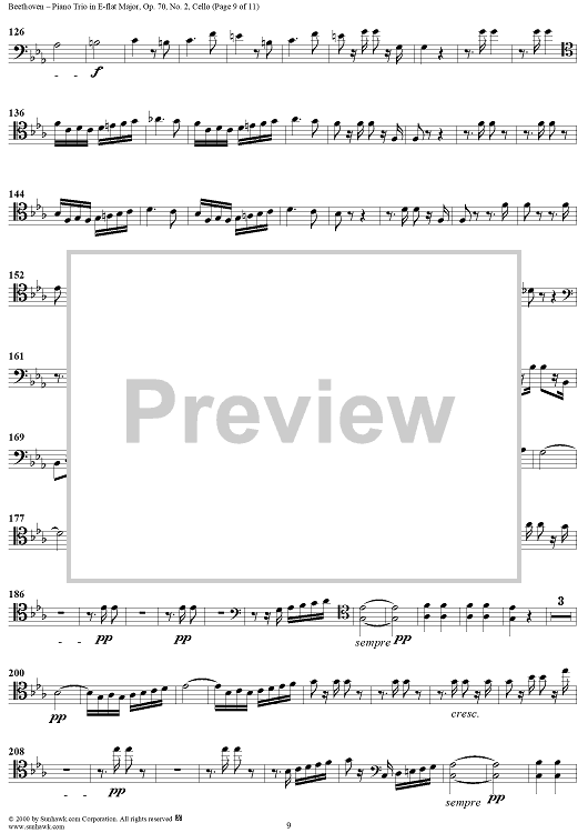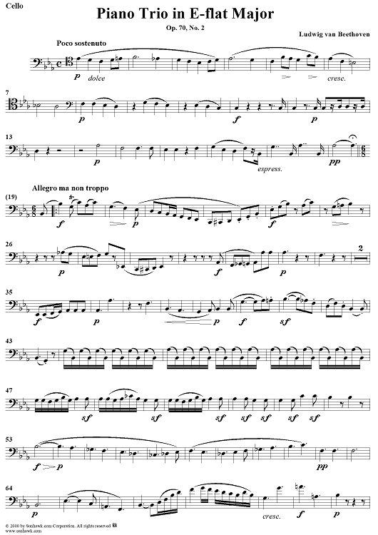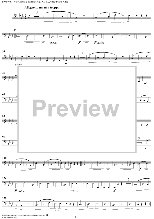 Digital Sheet Music for Piano Trio No. 6 in E-flat Major, Op. 70, No. 2 - Cello by Ludwig van Beethoven scored for Piano Trio; id:275519