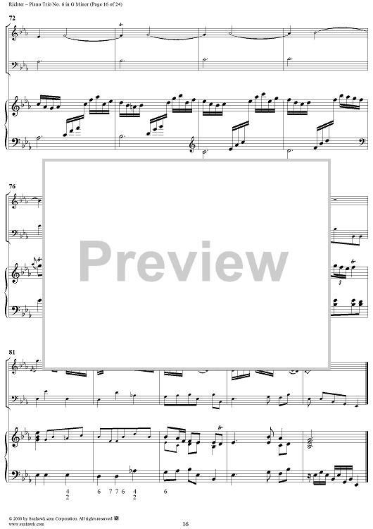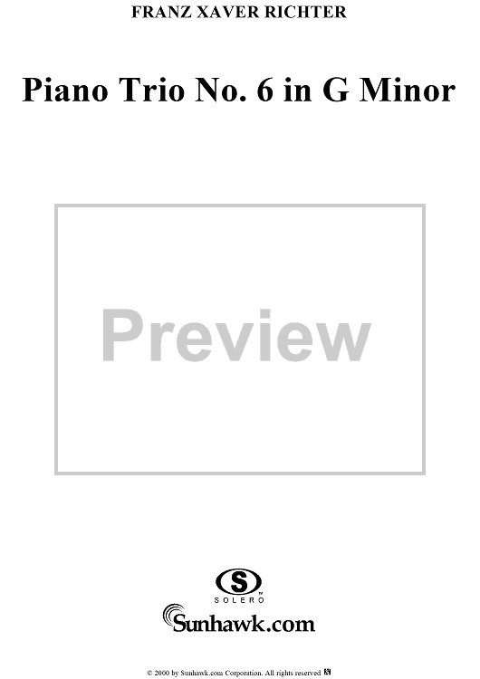 Digital Sheet Music for Piano Trio No. 6 in G Minor - Piano Score by Franz Xaver Richter scored for Flute/Cello/Piano; id:235330