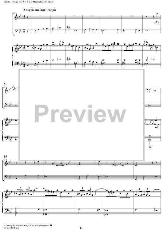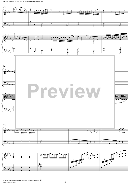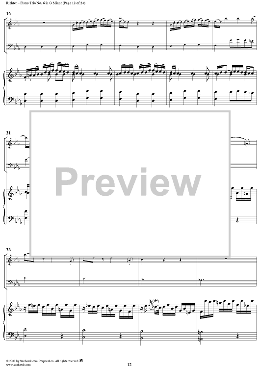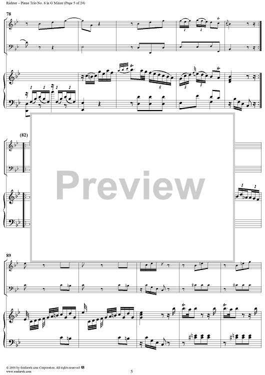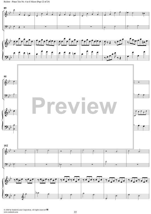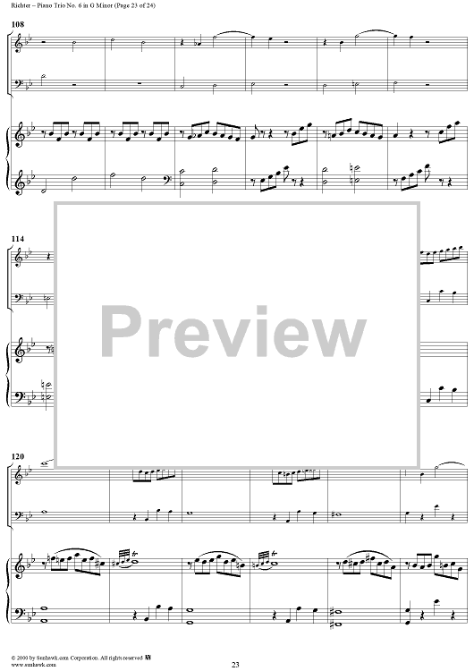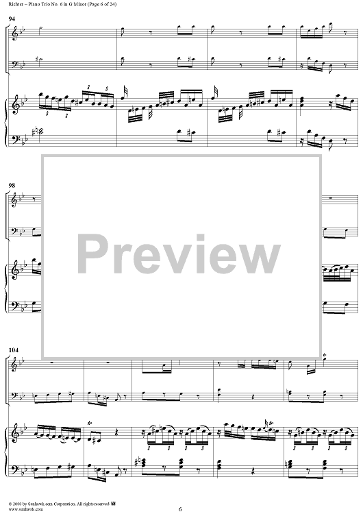 "Piano Trio No. 6 in G Minor - Piano Score" Sheet Music by Franz Xaver Richter
