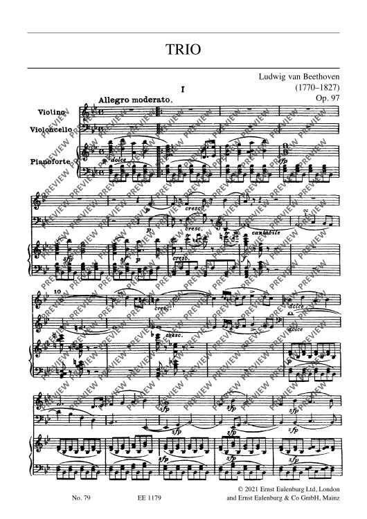 "Piano Trio No. 7 Bb major - Full Score" Sheet Music by Ludwig van Beethoven