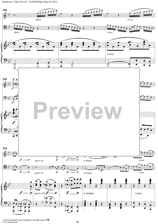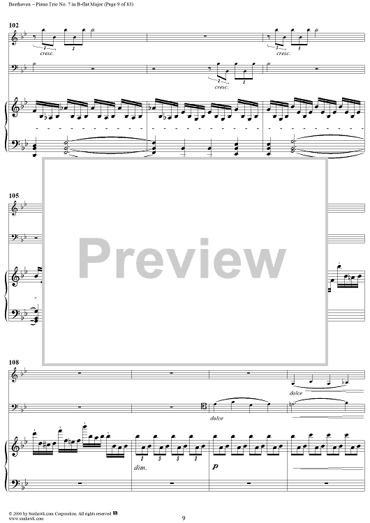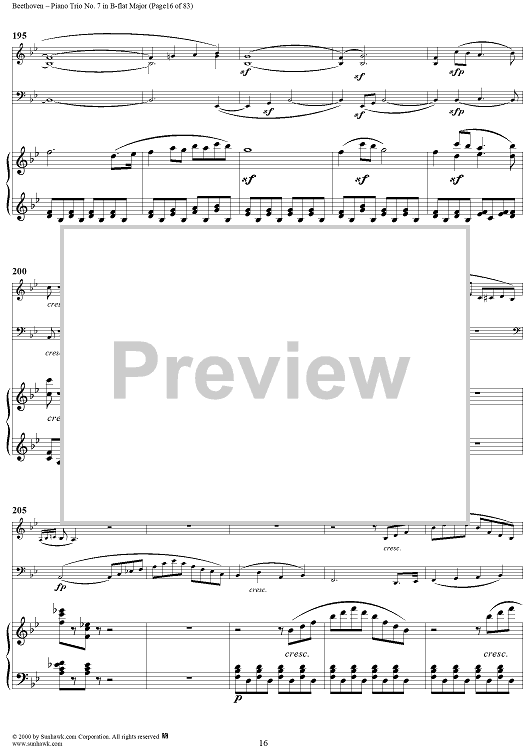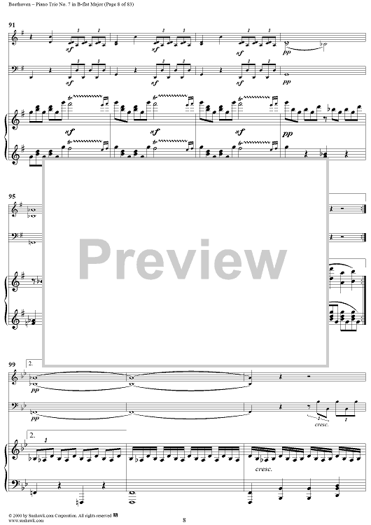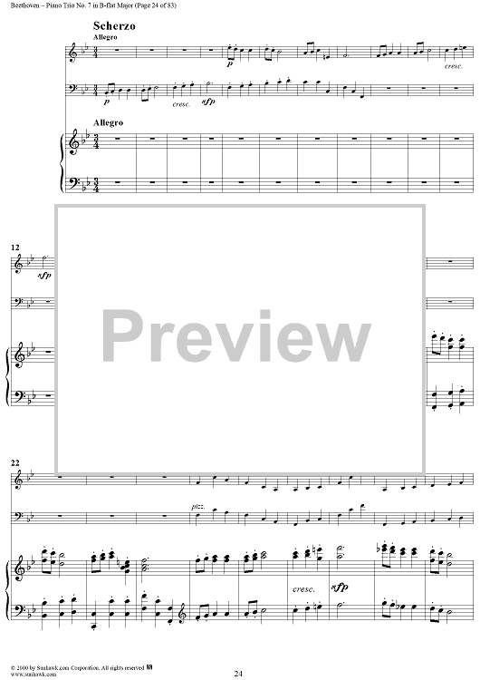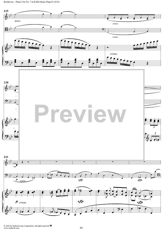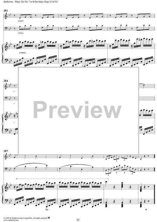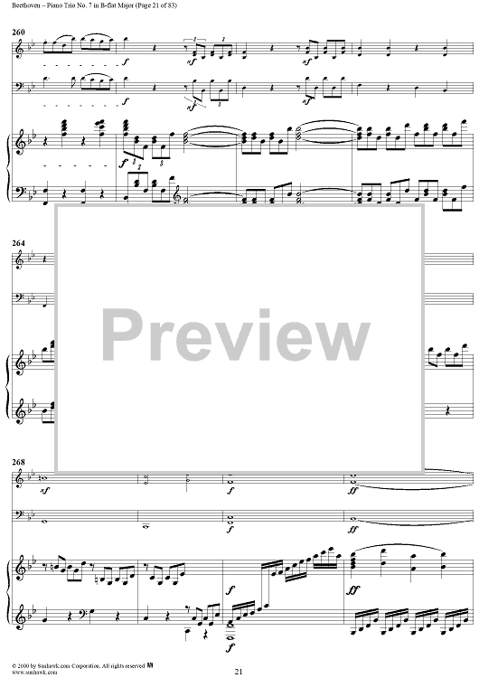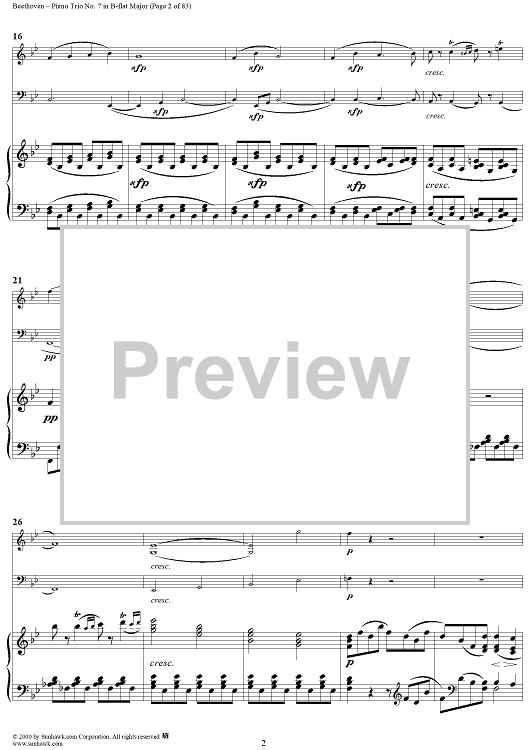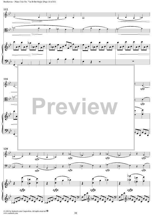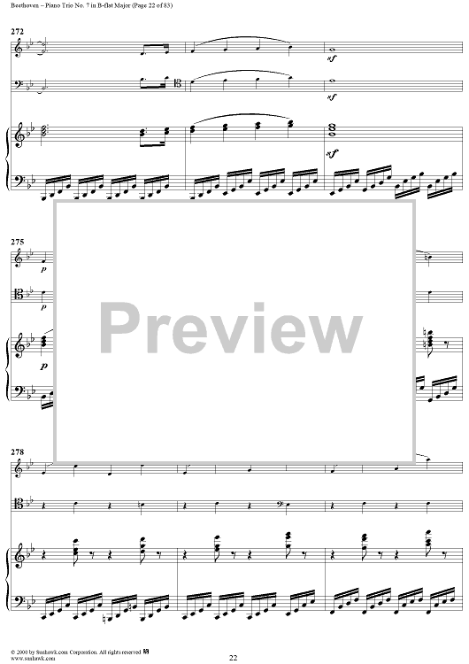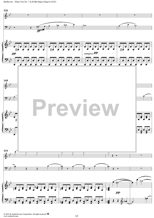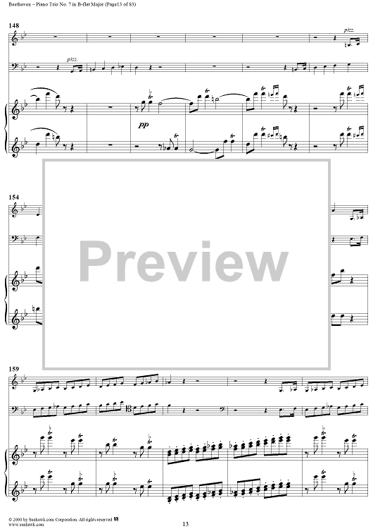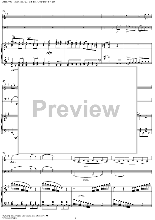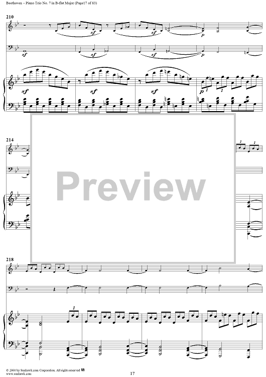 Digital Sheet Music for Piano Trio No. 7 in B-flat Major, "Archduke" - Piano Score by Ludwig van Beethoven scored for Piano Trio; id:275174