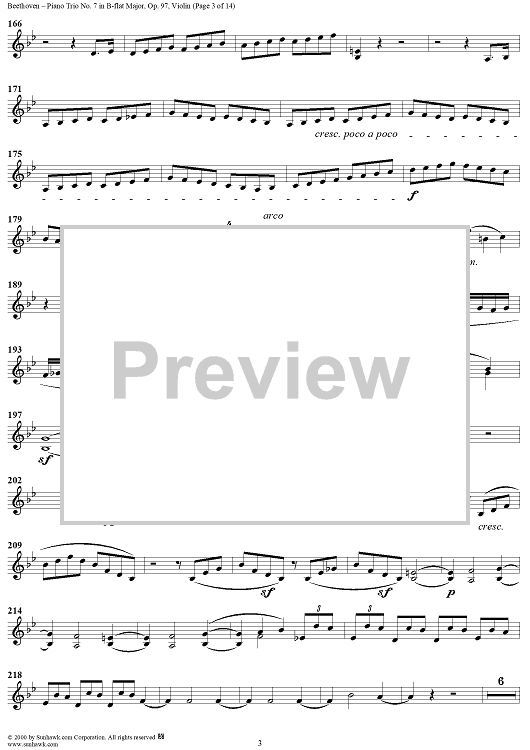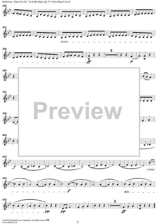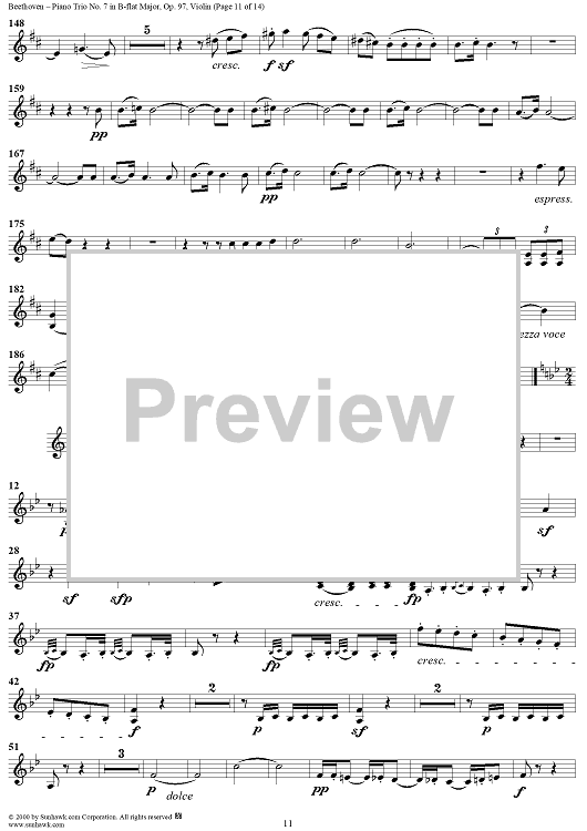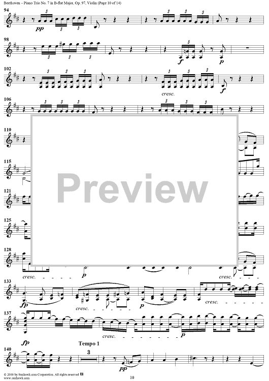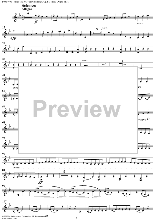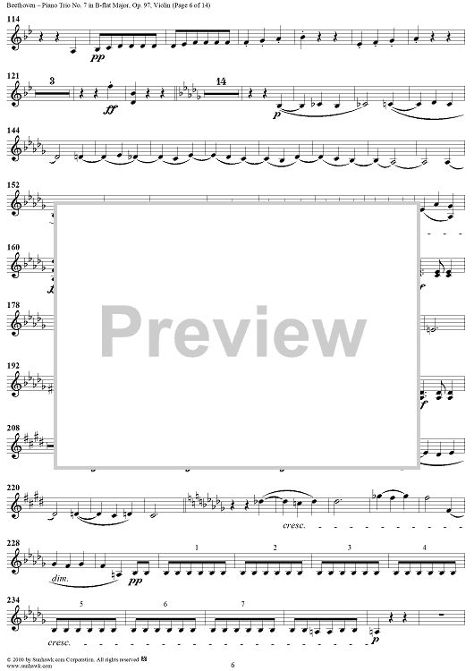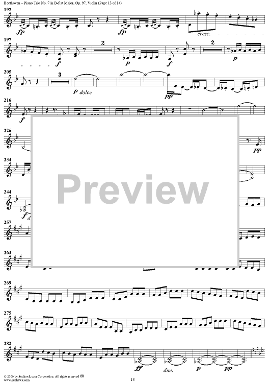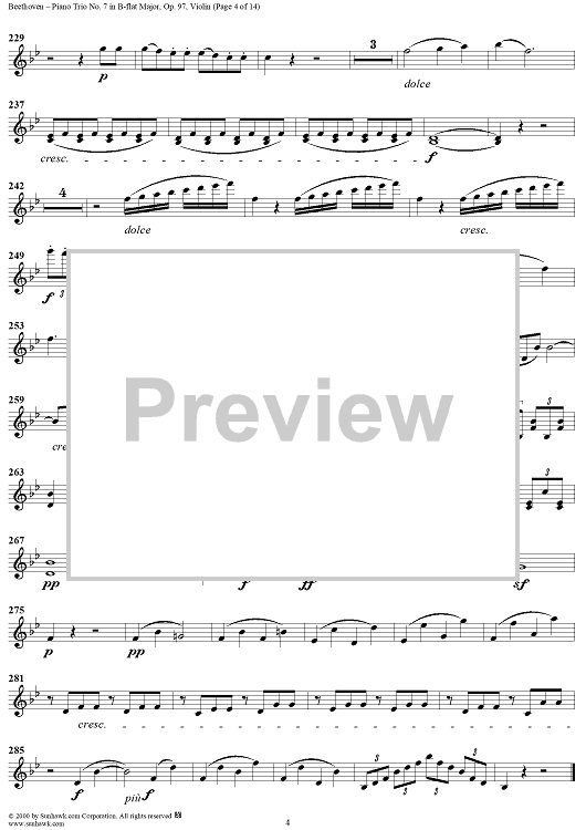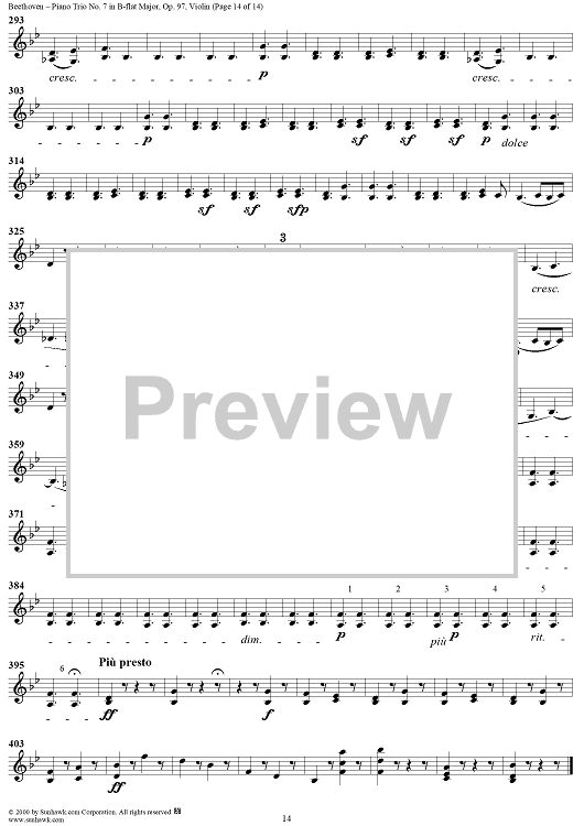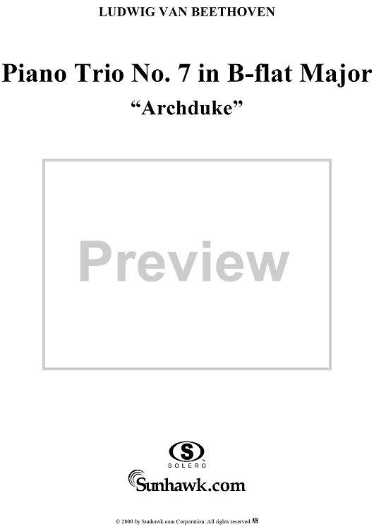 Digital Sheet Music for Piano Trio No. 7 in B-flat Major, "Archduke" - Violin by Ludwig van Beethoven scored for Piano Trio; id:275289