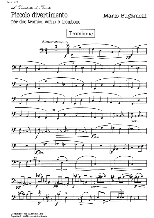 Digital Sheet Music for Piccolo divertimento - Trombone by , Mario Bugamelli scored for Brass Quartet; id:335549