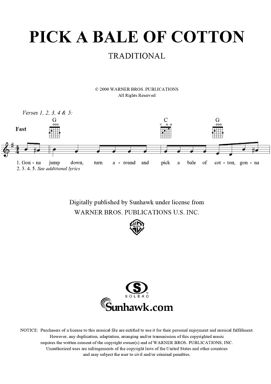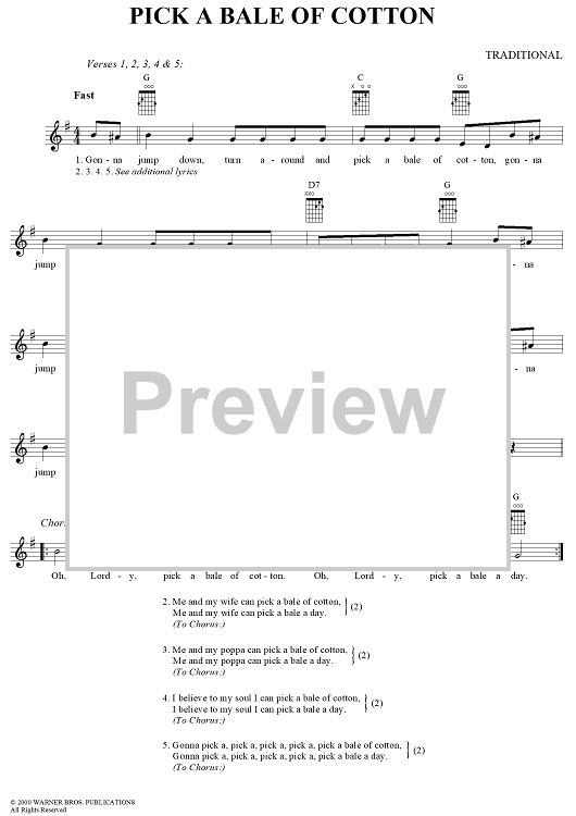 "Pick a Bale of Cotton" Sheet Music by Traditional